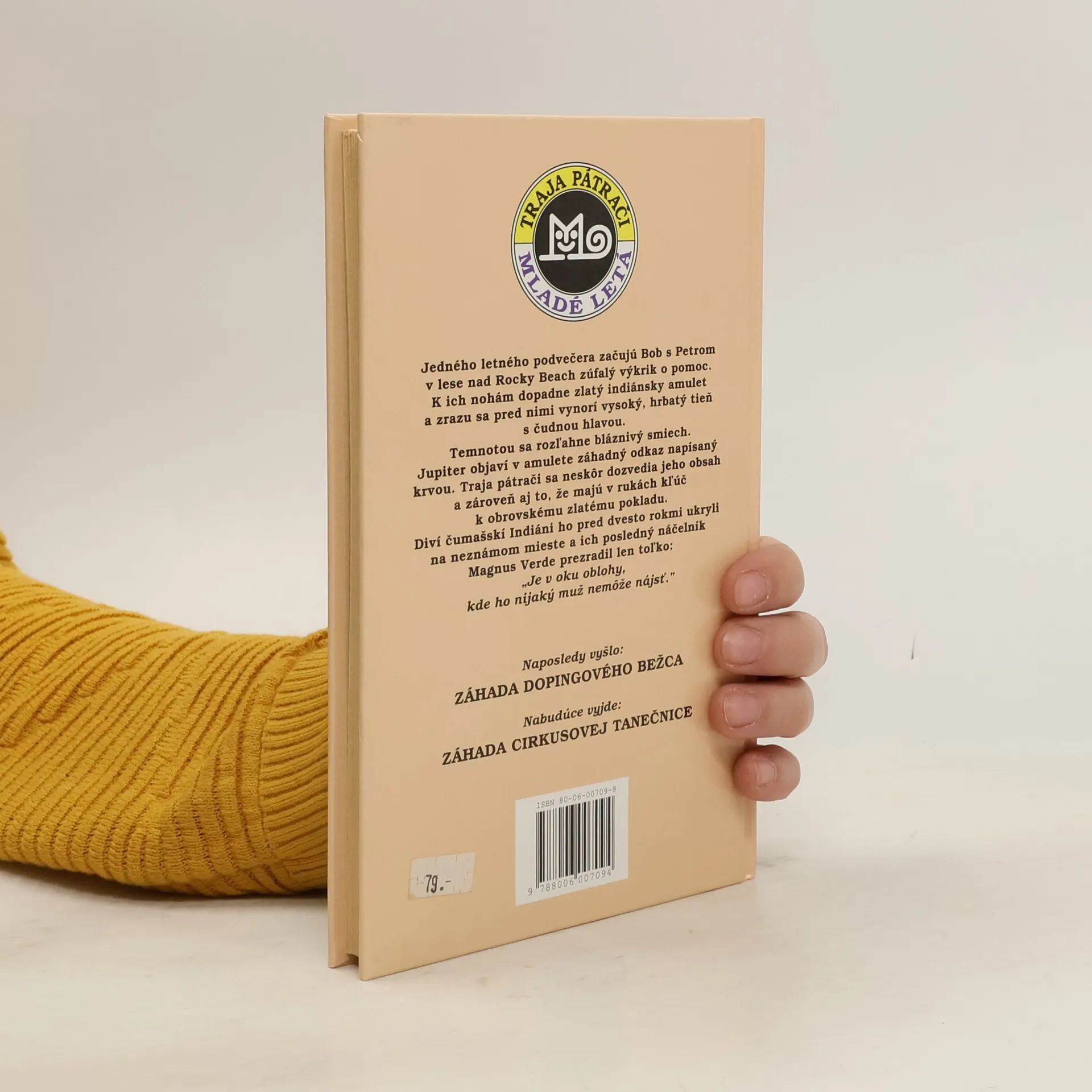 Jedného letného podvečera začujú Bob s Petrom v lese nad Rocky Beach zúfalý výkrik o pomoc. K ich nohám dopadne zlatý indiánsky amulet a zrazu sa pred nimi vynorí vysoký, hrbatý tieň s čudnou hlavou...