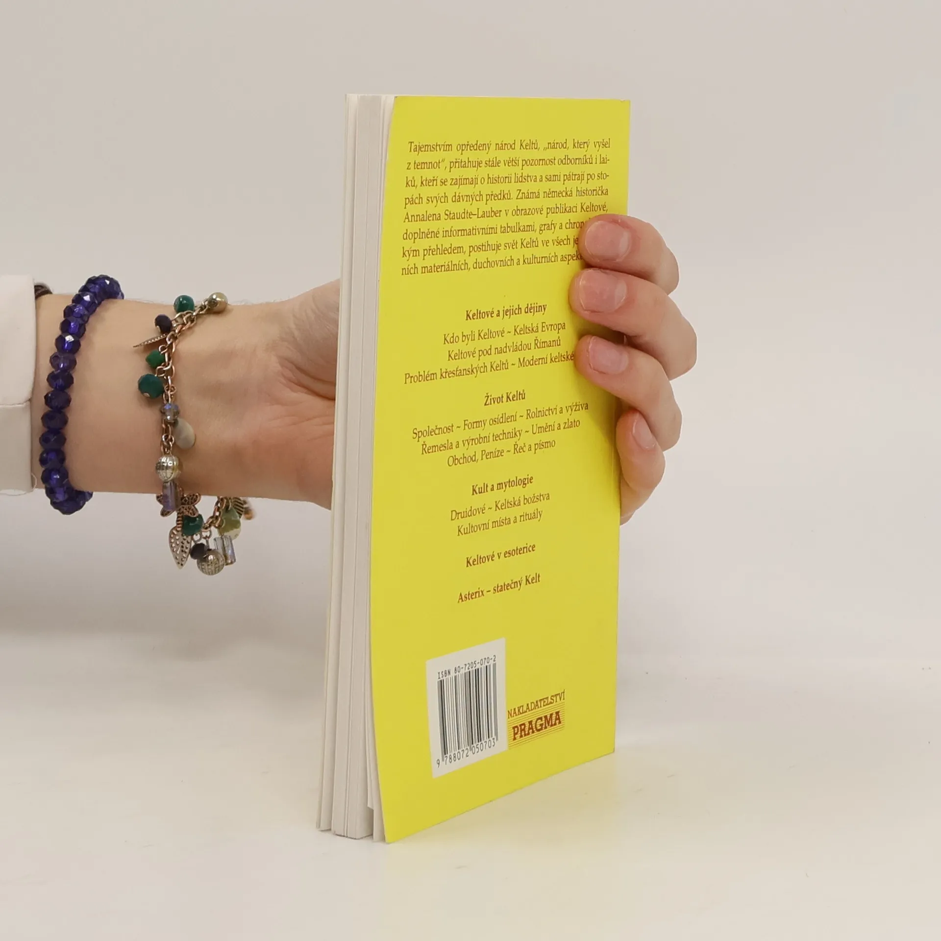 * Keltové a jejich dějiny (Prameny, Kdo byli Keltové, Keltská Evropa, Živoření pod nadvládou Římanů, Problém křesťanských Keltů, Moderní keltské jazyky) * Život Keltů (Společnost, Formy osídlení, Rolnictví a výživa, Řemesla a výrobní techniky, Umění a zlato, Obchod a peníze, Keltové a sůl, Řeč a písmo) * Kult a mytologie (Druidové, Keltská božstva, Kultovní místa a rituály) * Keltové v esoterice * Asterix – statečný Kelt * Dodatek (Chronologie, Seznam další literatury, Seznam vyobrazení)