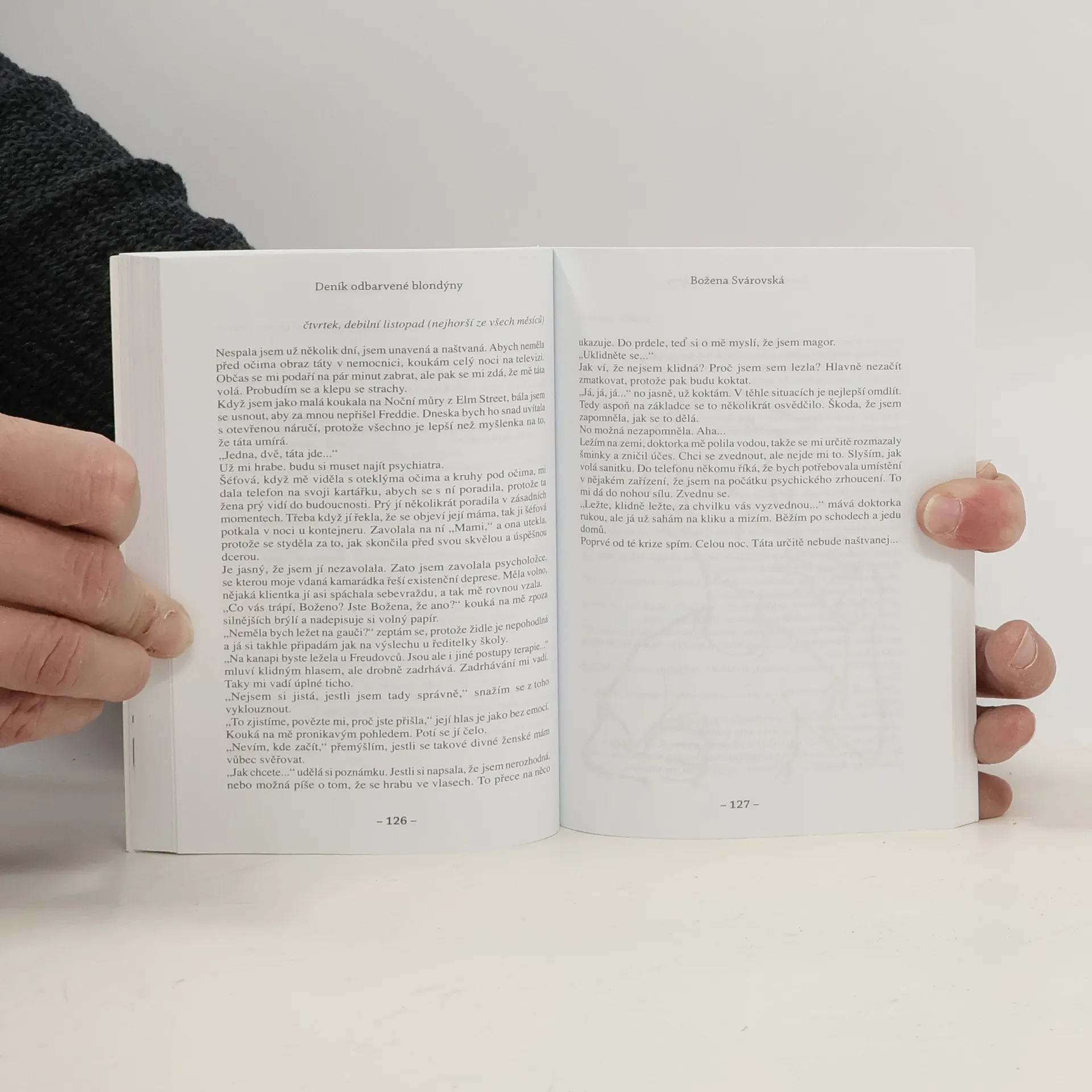 Pekelný život ženy s odbarvenou hlavou. Blondýnka Božena Svárovská glosuje dění kolem sebe i radosti a strasti osobního života. Jak se jedna žena vyrovná se špatným sexem, plastickou operací, smrtí otce, sexuálním harašením a nabídkou k sňatku? A proč jméno Božena není dobré, když chcete dělat kariéru v médiích a hledáte lásku snů? Vycházelo na pokračování ve známém časopise.