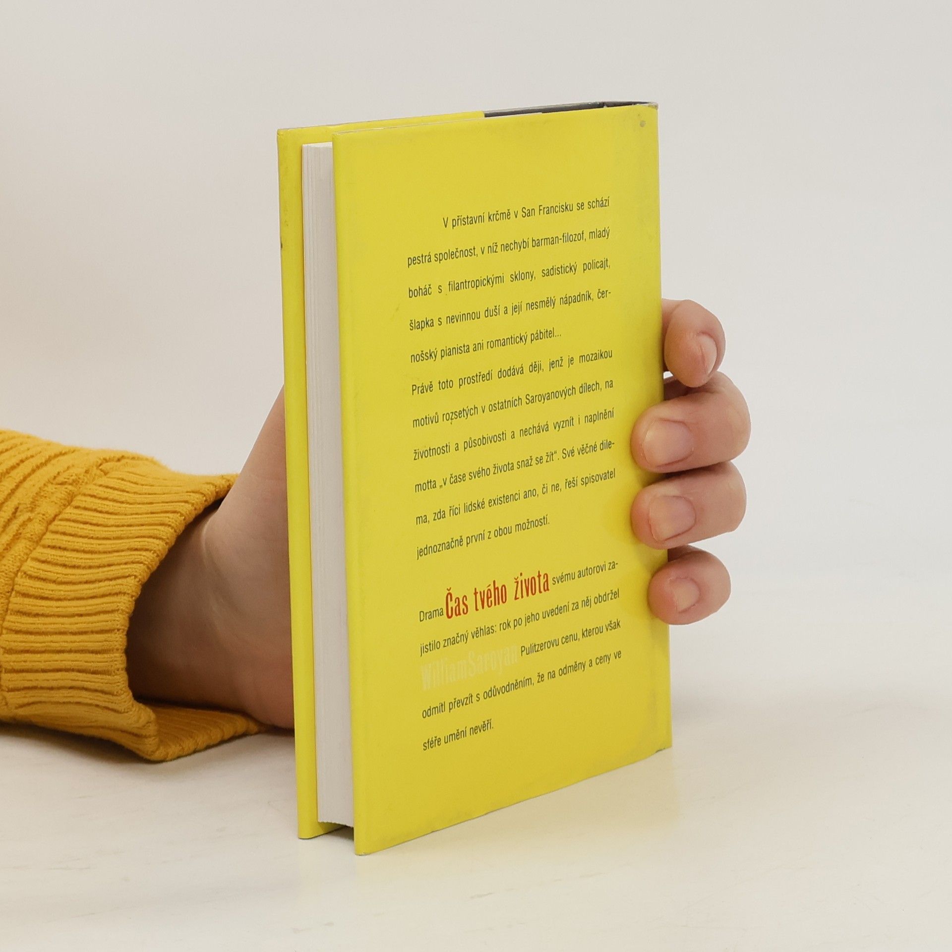 Kniha legendárního amerického spisovatele pojednávající o životních proměnách a osudových setkáních, o dlouhém i krátkém čase života jeho hrdinů. V přístavní krčmě v San Francisku se schází pestrá společnost, v níž nechybí barman-filozof, mladý boháč s filantropickými sklony, sadistický policajt, šlapka s nevinnou duší a její nesmělý nápadník, černošský pianista ani romantický pábitel... Právě toto prostředí dodává ději, jenž je mozaikou motivů rozsetých v ostatních Saroyanových dílech, na životnosti a působivosti a nechává vyznít i naplnění motta "v čase svého života snaž se žít". Své věčné dilema, zda říci lidské existenci ano, či ne, řeší spisovatel jednoznačně první z obou možností. Drama Čas tvého života svému autorovi zajistilo značný věhlas: rok po jeho uvedení za něj obdržel William Saroyan Pulitzerovu cenu, kterou však odmítl převzít s odůvodněním, že na odměny a ceny ve sféře umění nevěří. (Zdroj: přebal knihy)... celý text