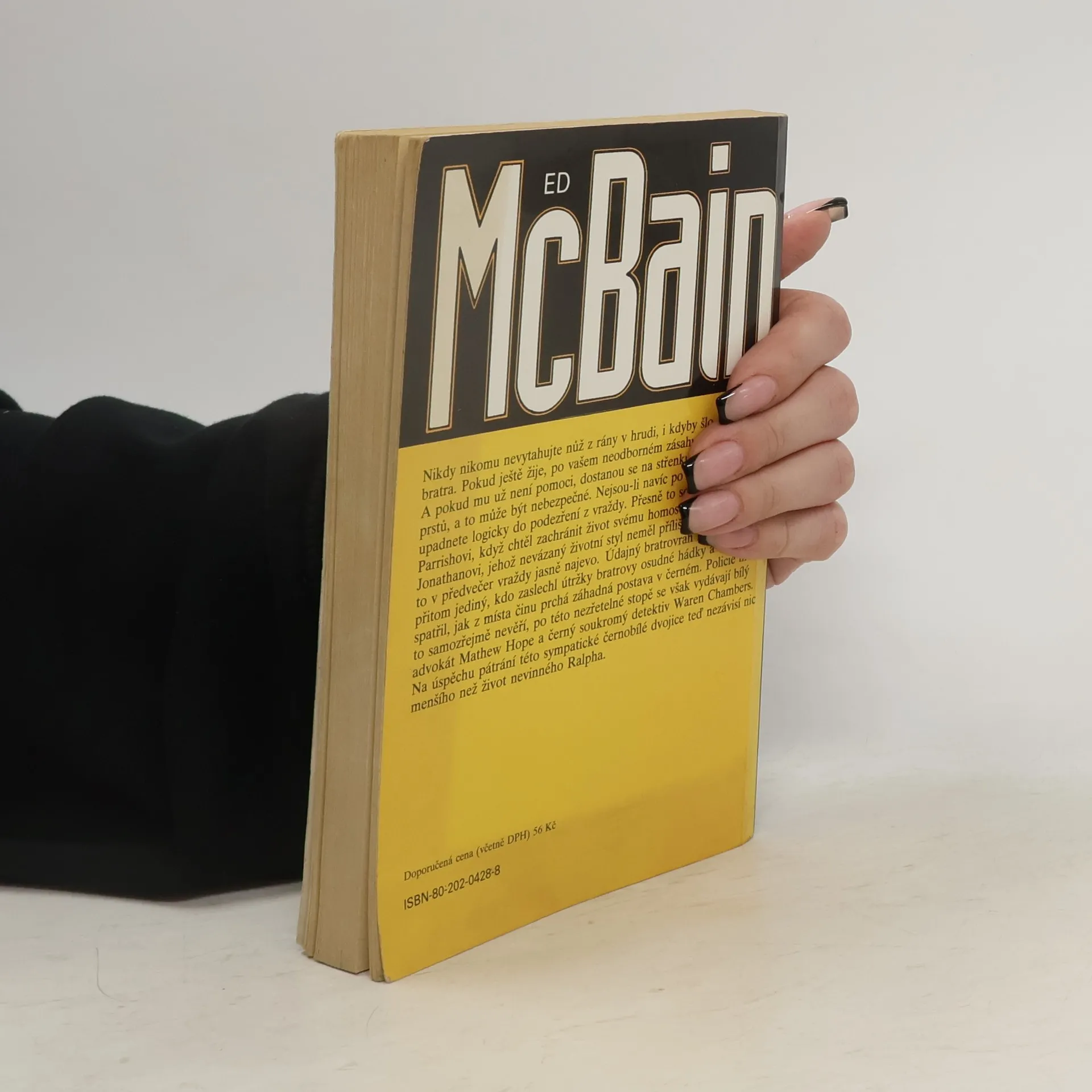 Nikdy nikomu nevytahujte nůž z rány v hrudi, i kdyby šlo o vlastního bratra. Pokud ještě žije, po vašem neodborném zásahu určite vykrvácí. A pokud mu už není pomoci, dostanou se na střenku otisky vašich prstů, a to může být nebezpečné. Nejsou-li navíc po ruce žádní svědci, upadnete logicky do podezření z vraždy. Přesne to se stalo Ralphu Parrishovi, když chtěl zachránit život svému homosexuálnímu bratru Jonathanovi, jehož nevázaný životní styl neměl příliš v lásce - a dal to v předvečer vraždy jasně najevo. Údajný bratrovrah Ralph byl přitom jediný, kdo zaslechl útržky bratrovy osudné hádky a vzápětí spatřil, jak z místa činu prchá záhadná postava v černém. Policie mu to samozřejmě neveří, po této nezřetelné stopě se však vydávají bílý advokát Mathew Hope a černý soukromý detektiv Waren Chambers. Na úspěchu pátrání této sympatické černobílé dvojice teď závisí nic menšího než život nevinného Ralpha.