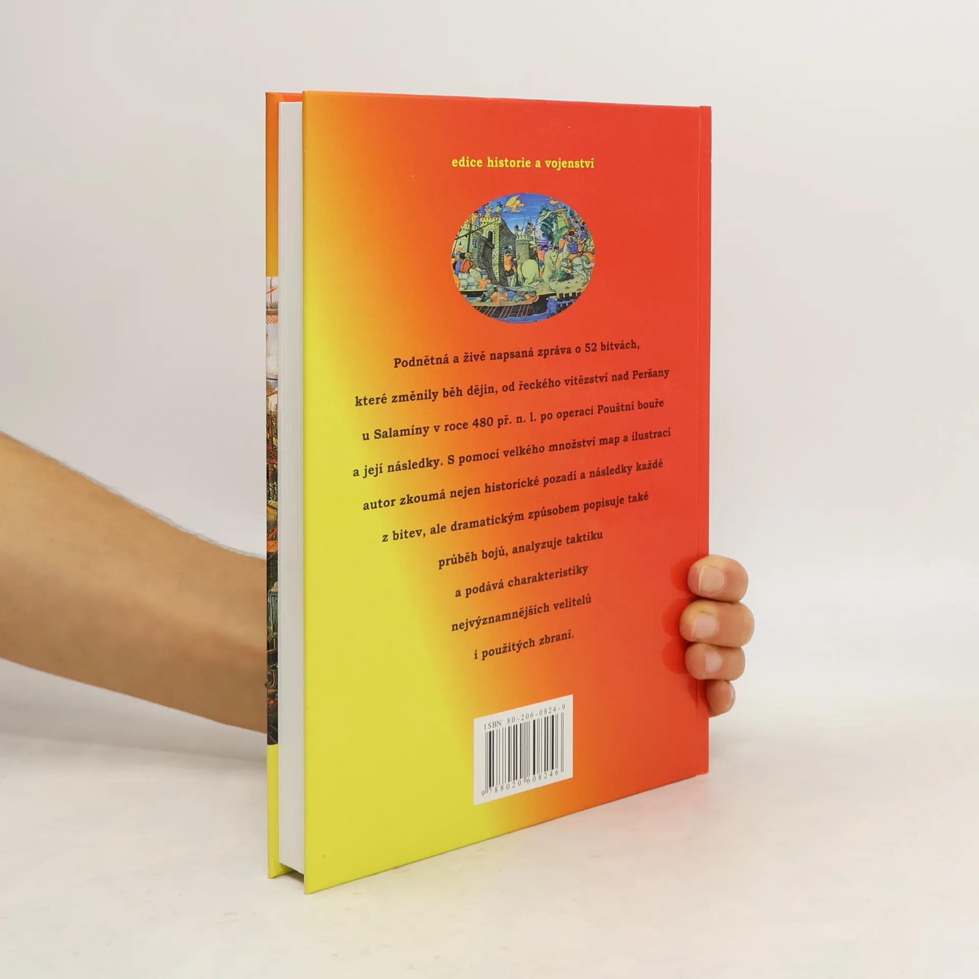 Podnětná a živě napsaná zpráva o 52 bitvách, které změnily běh dějin, od řeckého vítězství nad Peršany u Dalamány v roce 480 př. n. l., až po operaci Pouštní bouře a její následky. S pomocí velkého množství map a ilustrací autor zkoumá nejen historické pozadí a následky každé z bitev, ale dramatickým způsobem popisuje také průběh bojů, analyzuje taktiku a podává charakteristiky nejvýznamnějších velitelů i použitých zbraní.