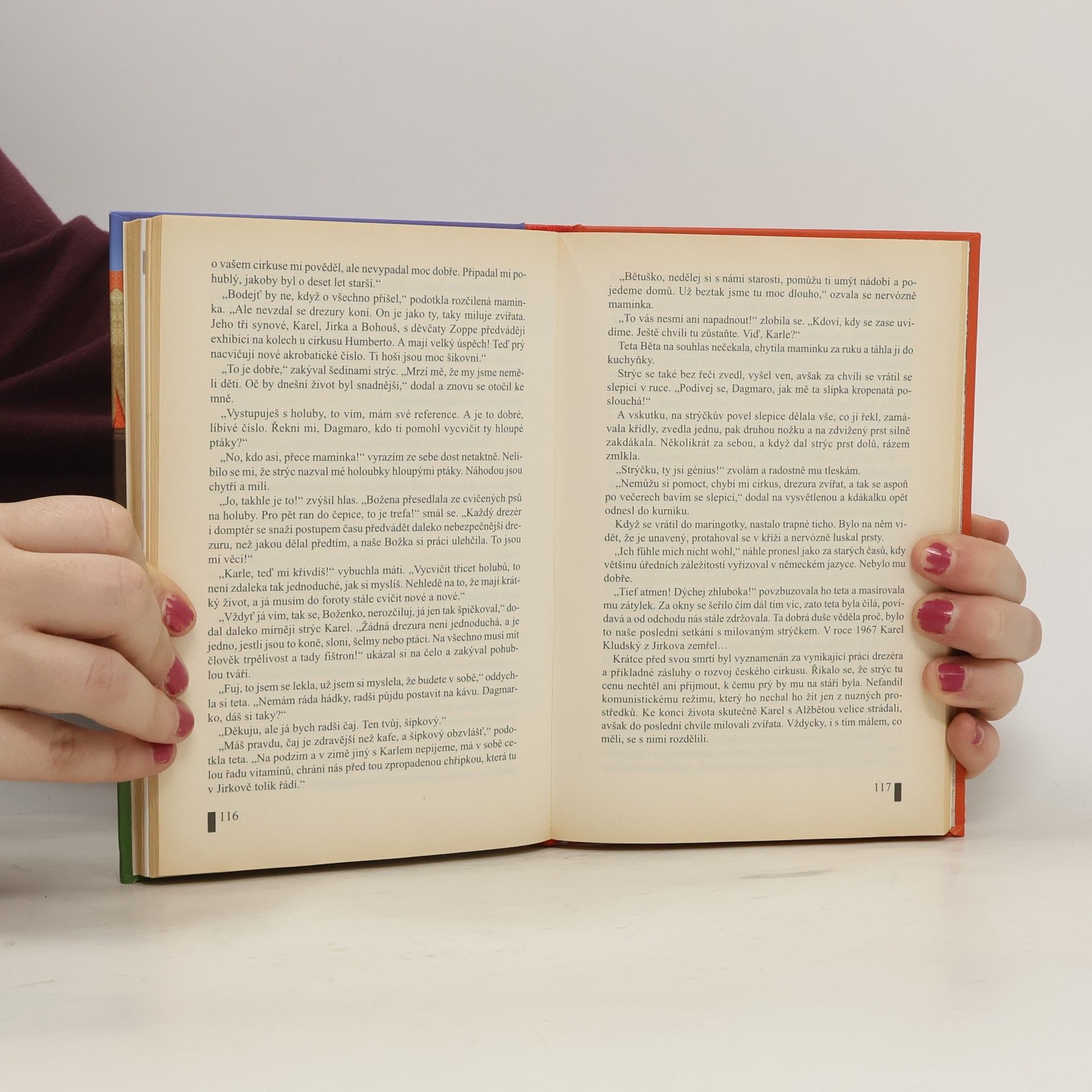 Podtitul: Historie rodiny Kludských Vzpomínky české kartářky, věštkyně a astroložky Dagmar Kludské zahrnují léta 1944-1972. Autorka sice připomíná minulost příslušníků tří větví slavného rodu Kludských, působících v cirkusu a varieté i jako majitelé putovního kina a panoptika voskových figur, ale těžiště její knihy spočívá v reminiscencích na období dětství, dospívání i na úspěšnou kariéru cirkusové a varietní umělkyně. Již jako dítě snila o akrobacii na visuté hrazdě, ale nemohla se jí věnovat kvůli zdravotním problémům. V jedenácti letech se konečně dostala do manéže, kde vystupovala s cvičenými holuby. Později se začala zajímat i o moderní hudbu a zpěv, dokonce se umístila na druhém místě v pěvecké soutěži Hledáme nové talenty. Podařilo se jí získat angažmá ve státním cirkusu Evropa, kde působila jako zpěvačka a konferenciérka. V osmnácti letech zpívala v kavárně v Chebu a v Karlových Varech. Po sňatku v roce 1964 a po narození třetího dítěte své cesty po Evropě s matkou a sestrami ukončila a věnovala se rodině. Autorka poutavě zachycuje atmosféru cirkusové manéže a vyjadřuje svůj obdiv a úctu k práci akrobatů, klaunů, žonglérů, krotitelů i dělníků.