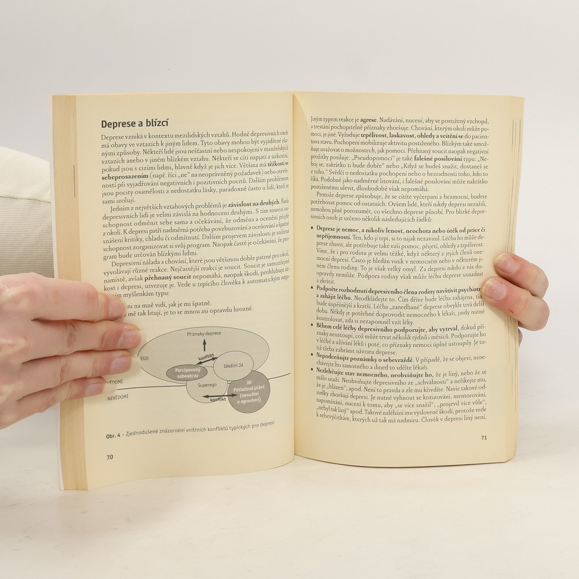 Podtitul: Stop zoufalství a beznaději. Příručka pro postižené, jejich blízké a pomáhající profese. Depresivní porucha je onemocnění celého organismu, které postihuje tělo, náladu, myšlení i chování. Bez léčby mohou příznaky deprese trvat měsíce i léta, mohou nemocnému způsobovat velké utrpení, nebo dokonce vést k sebevraždě. Dobrá léčba však může pomoci více než osmdesáti procentům lidí trpících depresí. Autoři uvádějí základní informace o depresích a příbuzných poruchách, jejich příčinách a projevech. Představují různé typy léčby. Důraz je kladen na to, co pacient může pro překonání deprese dělat sám a jak mu může pomáhat jeho rodina a okolí.