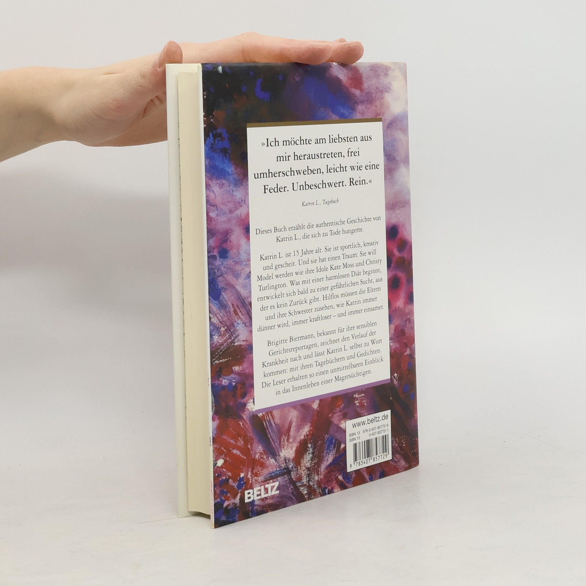 Katrin beginnt mit 15 eine harmlose Diät, die sich schnell zur Magersucht entwickelt. Sie hasst sich, kämpft gegen ihren Körper und niemand kann ihr helfen. Bald ist sie nur noch ein Schatten, der sich selbst in den Tod treibt ... Ab 13.