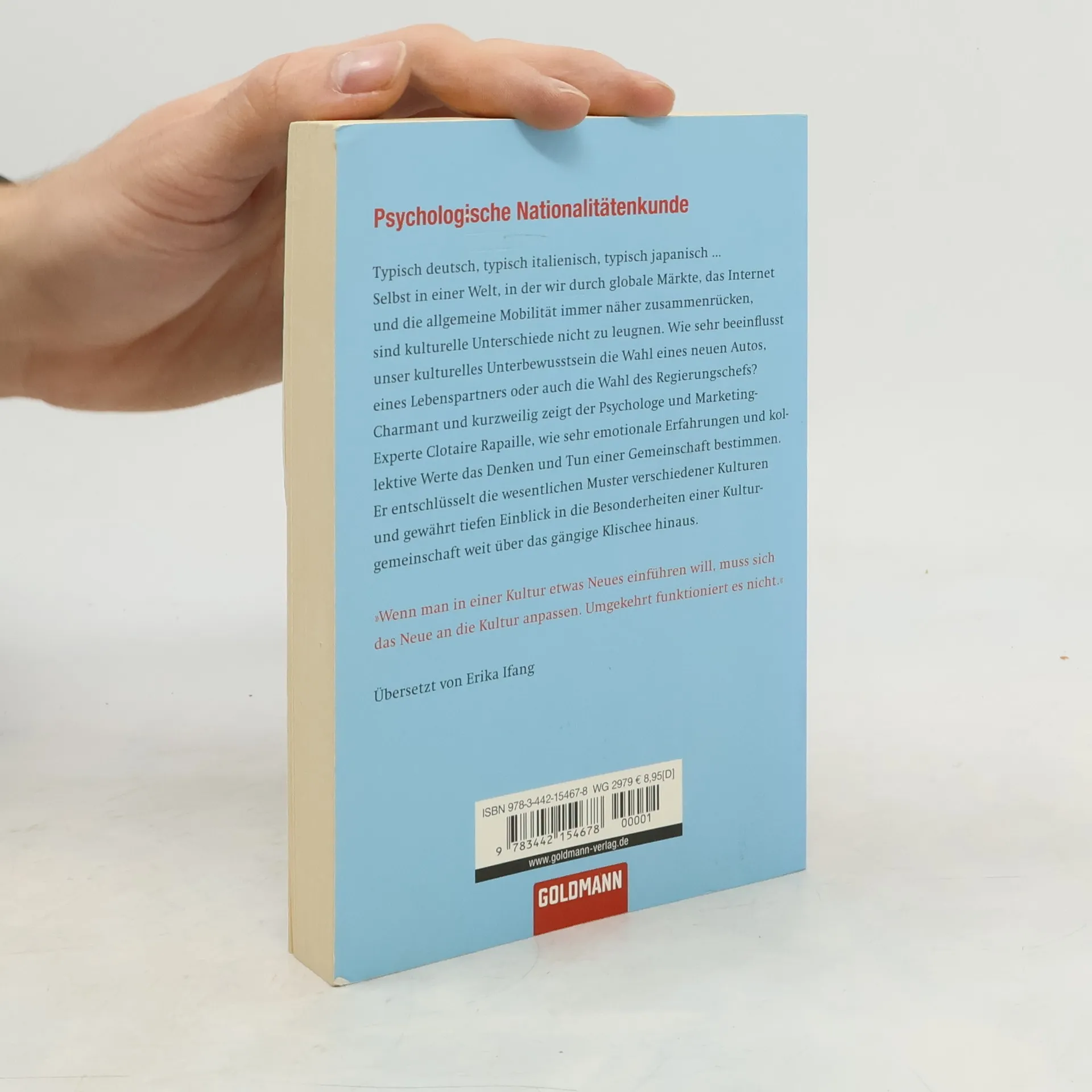 Was Deutsche von Amerikanern und Franzosen unterscheidet und die Folgen für Gesundheit, Beziehungen, Arbeit, Autos, Sex und Präsidenten. Seit Freud kennen wir das persönliche Unbewusste und seit Jung das kollektive Unbewusste. Doch was macht einen Amerikaner zum Amerikaner oder einen Deutschen zum Deutschen? Clotaire Rapailles Entdeckung des kulturellen Unbewussten oder „Codes“ ist ein epochaler Beitrag zur angewandten Psychologie. Der in Frankreich aufgewachsene US-Amerikaner präsentiert auf unterhaltsame Weise prägende kulturelle Einflüsse, die helfen, andere Nationalitäten besser zu verstehen. „Amerikanisch sein“ wird von Franzosen mit Raumfahrt, von Engländern mit Verschwendung und von Deutschen mit John Wayne assoziiert. Ein amerikanischer Präsident muss den Eindruck erwecken, sein Volk wie Moses ins gelobte Land zu führen, um geliebt und gewählt zu werden. Warum verbinden Amerikaner Liebe mit „falscher Erwartung“, Sex mit „Gewalt“ und Schönheit mit „Erlösung“? Während für Franzosen Käse mit mütterlicher Liebe aufgeladen ist, erfüllt für Amerikaner Erdnussbutter eine ähnliche Funktion. Diese und weitere überraschende Einsichten vermittelt Rapailles „Code-Knacker“ mit charmantem Humor. Nach der Lektüre wird man Menschen nie mehr mit den gleichen Augen sehen.