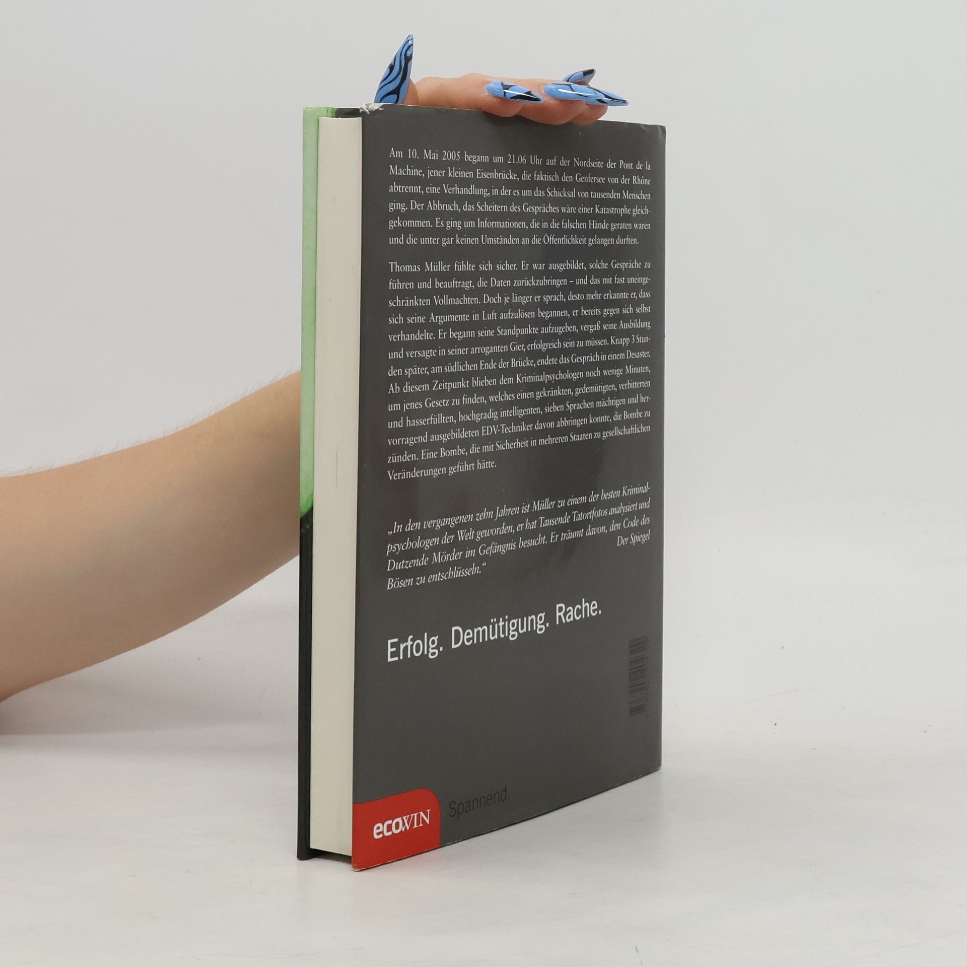Am 10. Mai 2005 begann um 21.06 Uhr auf der Nordseite der Pont de la Machine, jener kleinen Eisenbrücke, die faktisch den Genfersee von der Rhône abtrennt, eine Verhandlung, in der es um das Schicksal von tausenden Menschen ging. Der Abbruch, das Scheitern des Gespräches wäre einer Katastrophe gleich gekommen. Es ging um Informationen, die in die falschen Hände geraten waren und die unter gar keinen Umständen an die Öffentlichkeit gelangen durften. Thomas Müller fühlte sich sicher. Er war ausgebildet, solche Gespräche zu führen und beauftragt, die Daten zurückzubringen – und das mit fast uneingeschränkten Vollmachten. Doch je länger er sprach, desto mehr erkannte er, dass sich seine Argumente in Luft aufzulösen begannen, er bereits gegen sich selbst verhandelte. Er begann seine Standpunkte aufzugeben, vergaß seine Ausbildung und versagte in seiner arroganten Gier, erfolgreich sein zu müssen. Knapp 2 Stunden später, am südlichen Ende der Brücke, endete das Gespräch in einem Desaster. Ab diesem Zeitpunkt blieben dem Kriminalpsychologen noch wenige Minuten, um jenes Gesetz zu finden, welches einen gekränkten, gedemütigten, verbitterten und hass-erfüllten, hochgradig intelligenten, sieben Sprachen mächtigen und hervorragend ausgebildeten EDV-Techniker davon abbringen konnte, die Bombe zu zünden. Eine Bombe, die mit Sicherheit in mehreren Staaten zu gesellschaftlichen Veränderungen geführt hätte.