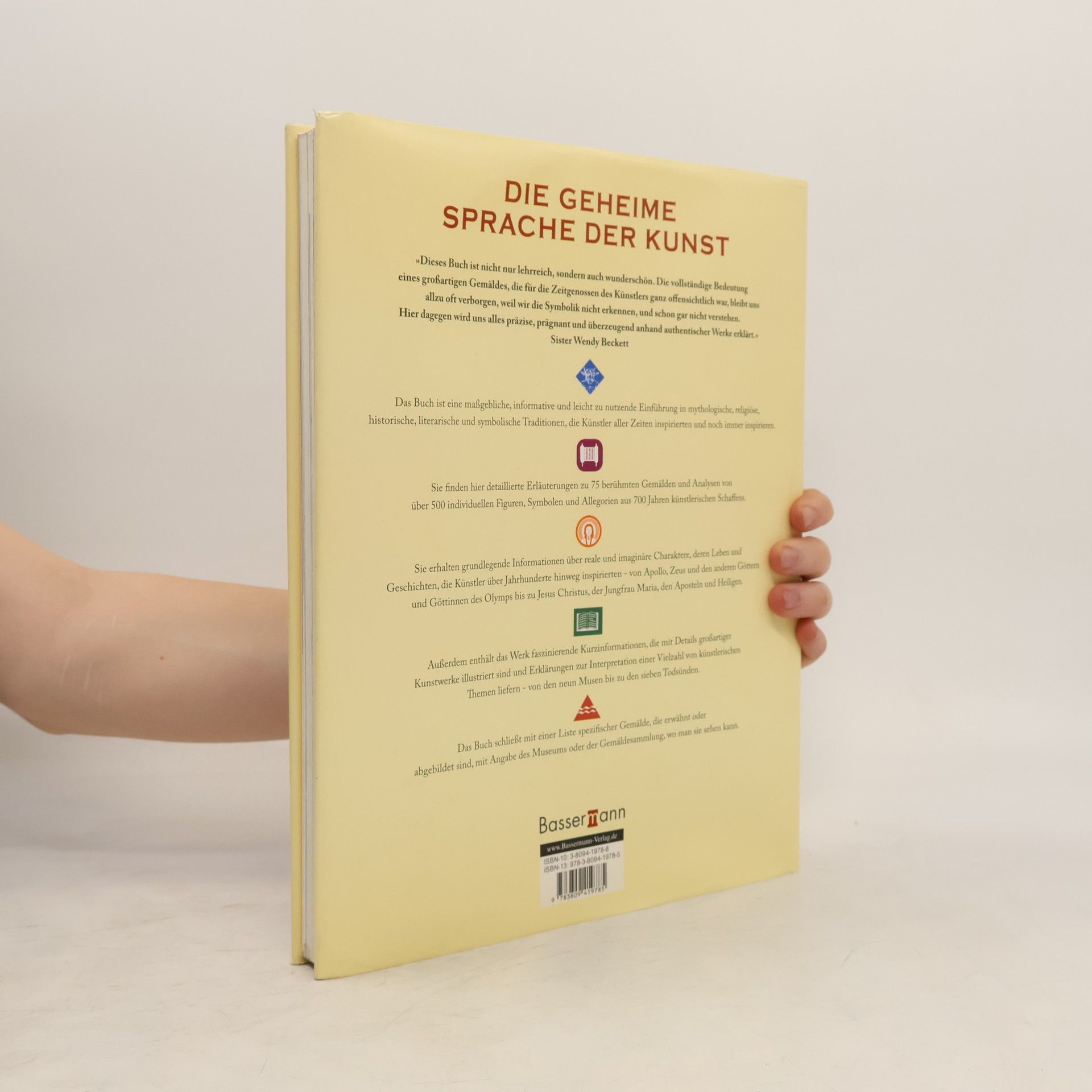 Das Buch bietet eine informative und leicht zu nutzende Einführung in mythologische, religiöse, historische, literarische und symbolische Traditionen, die Künstler aller Zeiten nutzten und noch immer nutzen. Detaillierte Erläuterungen - unter Berücksichtigung geschichtlicher, literarischer und künstlerischer Aspekte - zu 75 berühmten Gemälden und Analysen von über 500 Symbolen und Allegorien aus 700 Jahren künstlerischen Schaffens sind hier zu finden. Thematisch ist das Werk in fünf Kapitel gegliedert: Mythen und Sagen der Antike; Die Bibel und das Leben Christi; Heilige und ihre Wunder; Geschichte, Literatur und Kunst; Symbole und Allegorien.