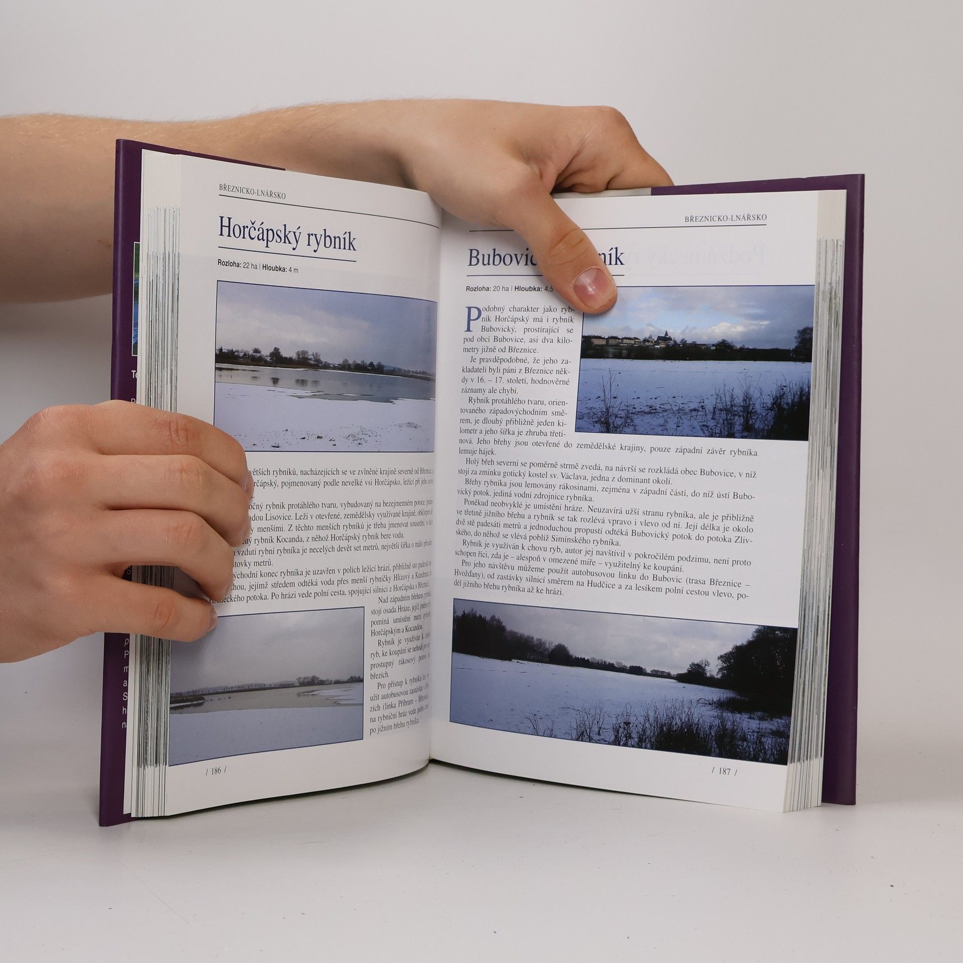 Podtitul: Kniha o českých rybnících Toulky českou krajinou podnikal autor této publikace (a předchozí knížky Městské brány v Čechách) po dobu více než tří let, nachodil stovky kilometrů, tisíce jich najezdil vlakem, autobusem a stopem a z hrází fotografoval zčeřené, lesklé i zamrzlé hladiny více než 250 rybníků. Musel vybírat – rybníků je u nás okolo dvaatřiceti tisíc! Zaměřil se na turistický, krajinotvorný a rekreační význam vybraných rybníků, přináší o každém co nejvíce informací a okrajově se věnuje i historii českého rybníkářství a významným stavitelům vodních děl.