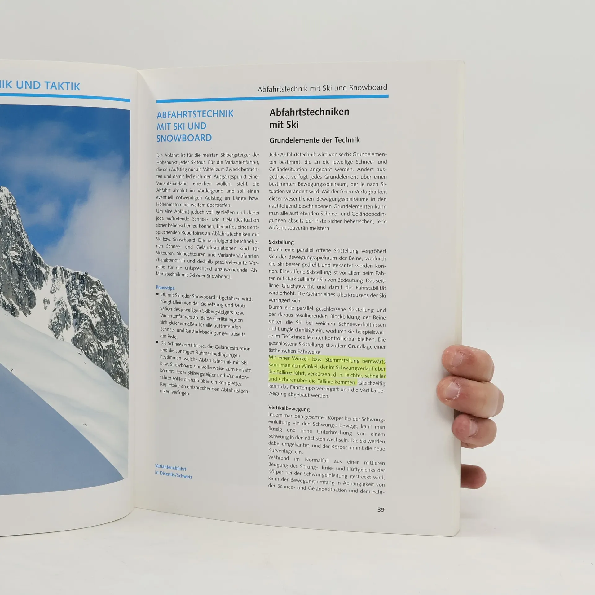 Grundlagen und Techniken des Skibergsteigens und ihre praktische Umsetzung auf Skitouren, Skihochtouren, beim Variantenfahren und bei Skitouren mit dem Snowboard: Bewegungstechnik und Taktik, Sicherungstechnik, Theorie, Umwelt- und Naturschutz.