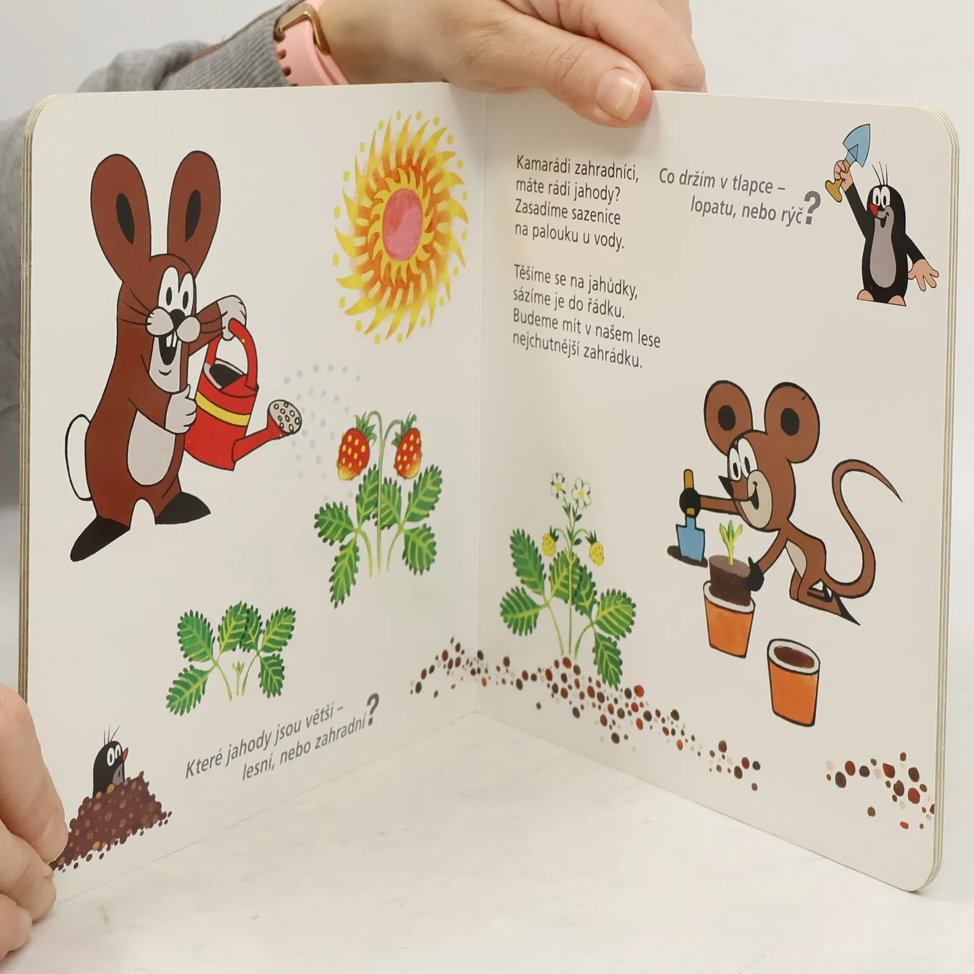 Druhý svazek řady poznávacích leporel pro nejmenší je zaměřen na různé činnosti. Děti se setkají se svým oblíbeným Krtečkem a jeho kamarády, kteří pečou koláče, stavějí sněhuláky nebo domeček, starají se o zahrádku, a dozvědí se mnoho nových informací z veselých obrázků Zdeňka Milera i z hravých říkadel a všetečných otázek Jiřího Źáčka.