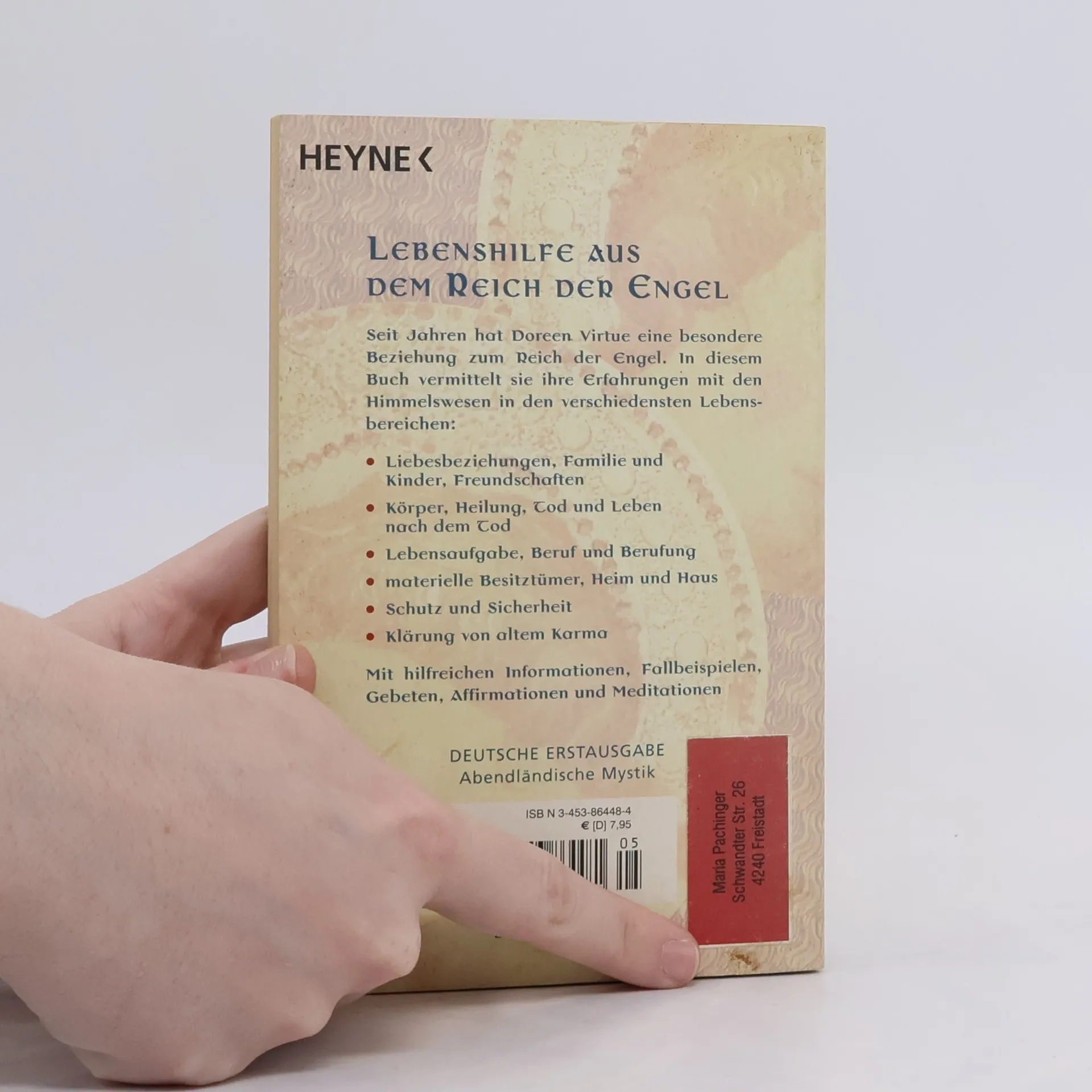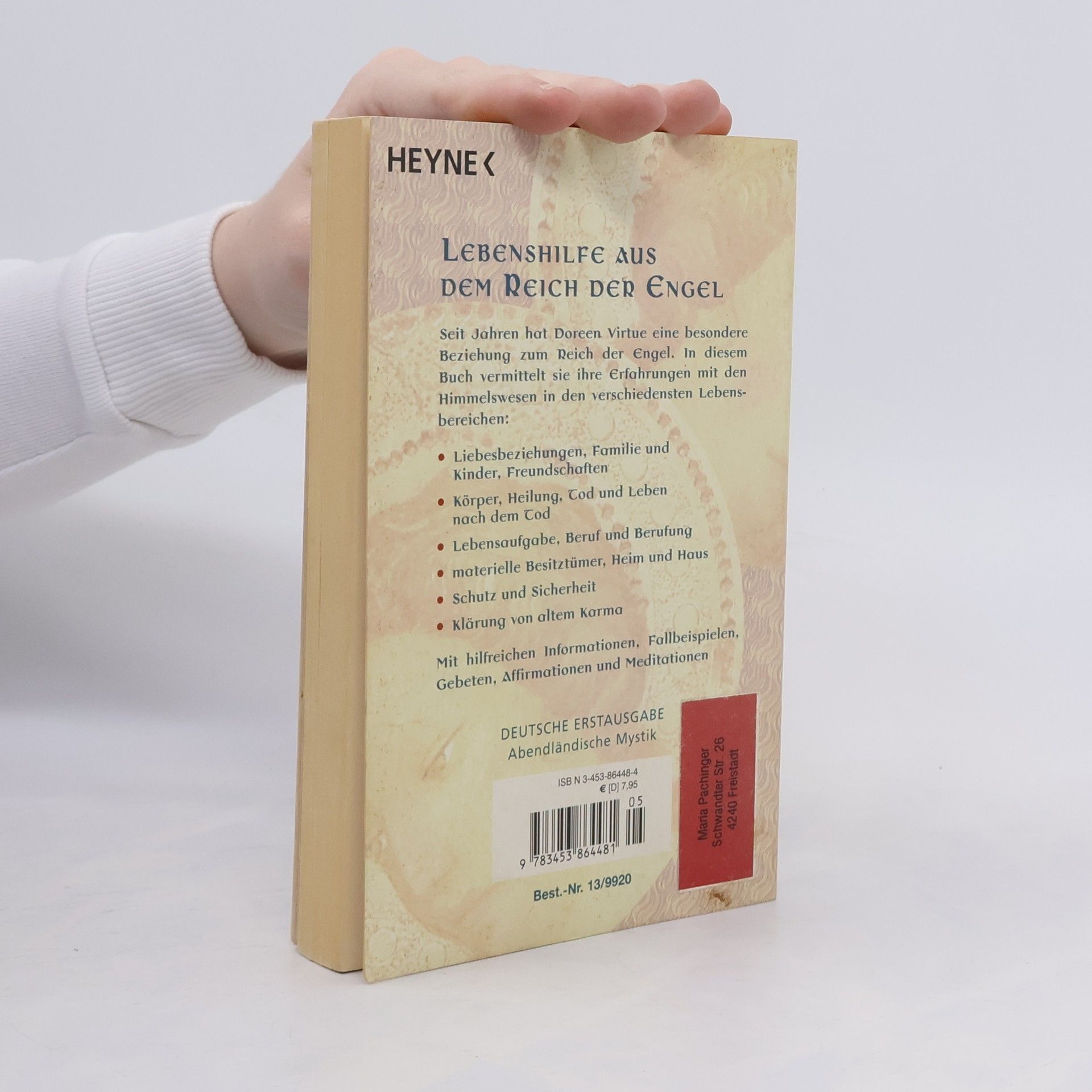 Lebenshilfe aus dem Reich der Engel Seit Jahren hat Doreen Virtue eine besondere Beziehung zum Reich der Engel. In diesem Buch vermittelt sie ihre Erfahrungen mit den Himmelswesen in den verschiedensten Lebensbereichen: - Liebesbeziehungen, Familie und Kinder, Freundschaften - Körper, Heilung, Tod und Leben nach dem Tod - Lebensaufgabe, Beruf und Berufung - materielle Besitztümer, Heim und Haus - Schutz und Sicherheit - Klärung von altem Karma Mit hilfreichen Informationen, Fallbeispielen, Gebeten, Affirmationen und Meditationen
