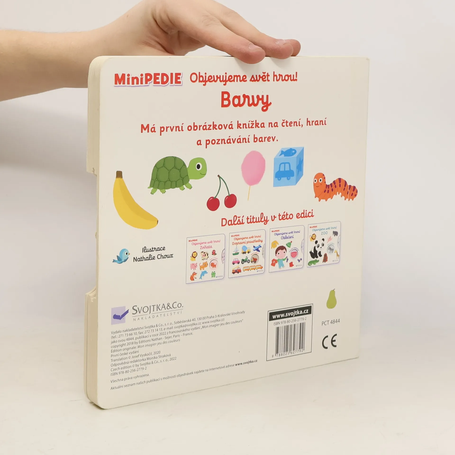 Víš, jakou barvu má beruška? Je velryba opravdu modrá? A co třeba malina? V této knížce naleznete mnoho krásných ilustrací, které jednoduchou formou ty nejmenší čtenáře seznámí se základními barvami a předměty v jejich okolí. Díky otáčivému kolečku je leporelo ještě zábavnější, a děti si tak velice snadno procvičí jemnou motoriku. Knížka s prvky Montessori. České vydání publikace nakladatelství Nathan.