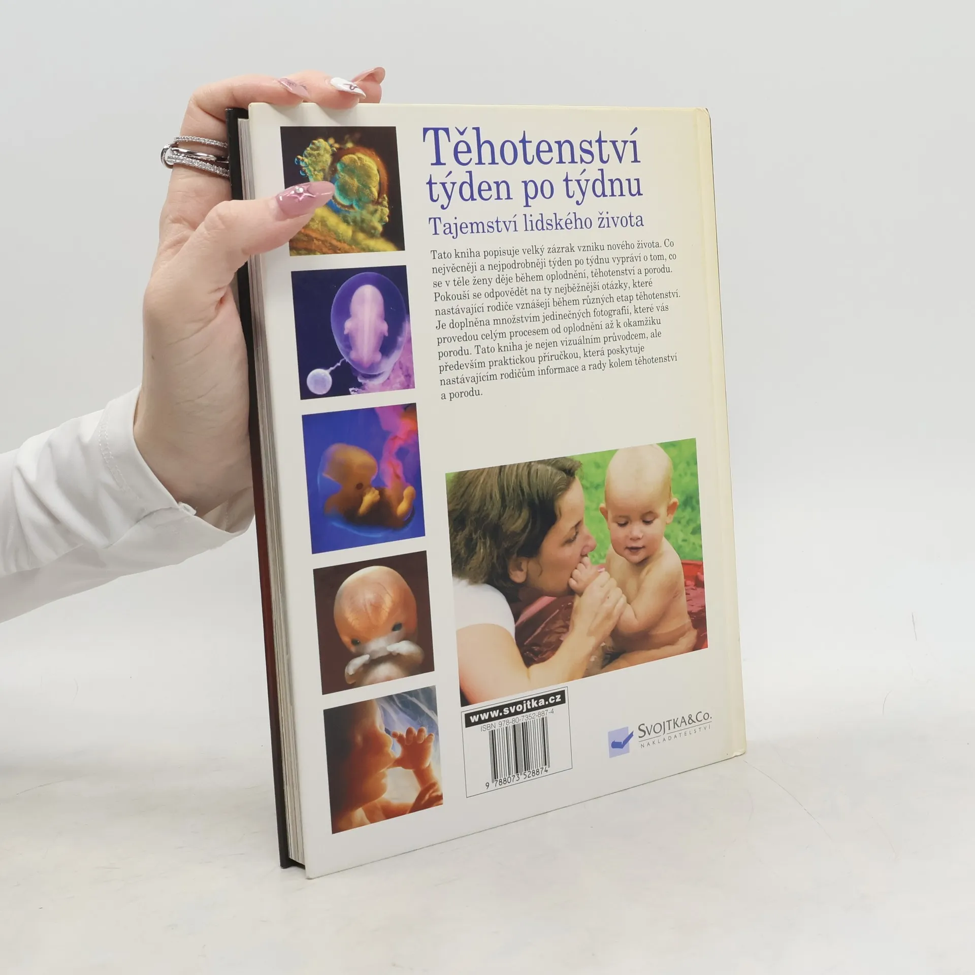 Tato kniha popisuje velký zázrak, který se stane, když vznikne člověk. Co nejvěcněji a co nejpodrobněji týden po týdnu vypráví o tom, co se děje během oplodnění, těhotenství a porodu. Pokouší se odpovědět na ty nejběžnější otázky, které nastávající maminky a tatínkové vznášejí během různých etap těhotenství. Je doplněna množstvím jedinečných fotografií, které nás provedou celým fantastickým procesem od oplodnění až k magickému okamžiku porodu.Tato kniha je nejen vizuálním dobrodružstvím, ale praktickou příručkou, která poskytuje nastávajícím rodičům informace a rady kolem těhotenství a porodu.
