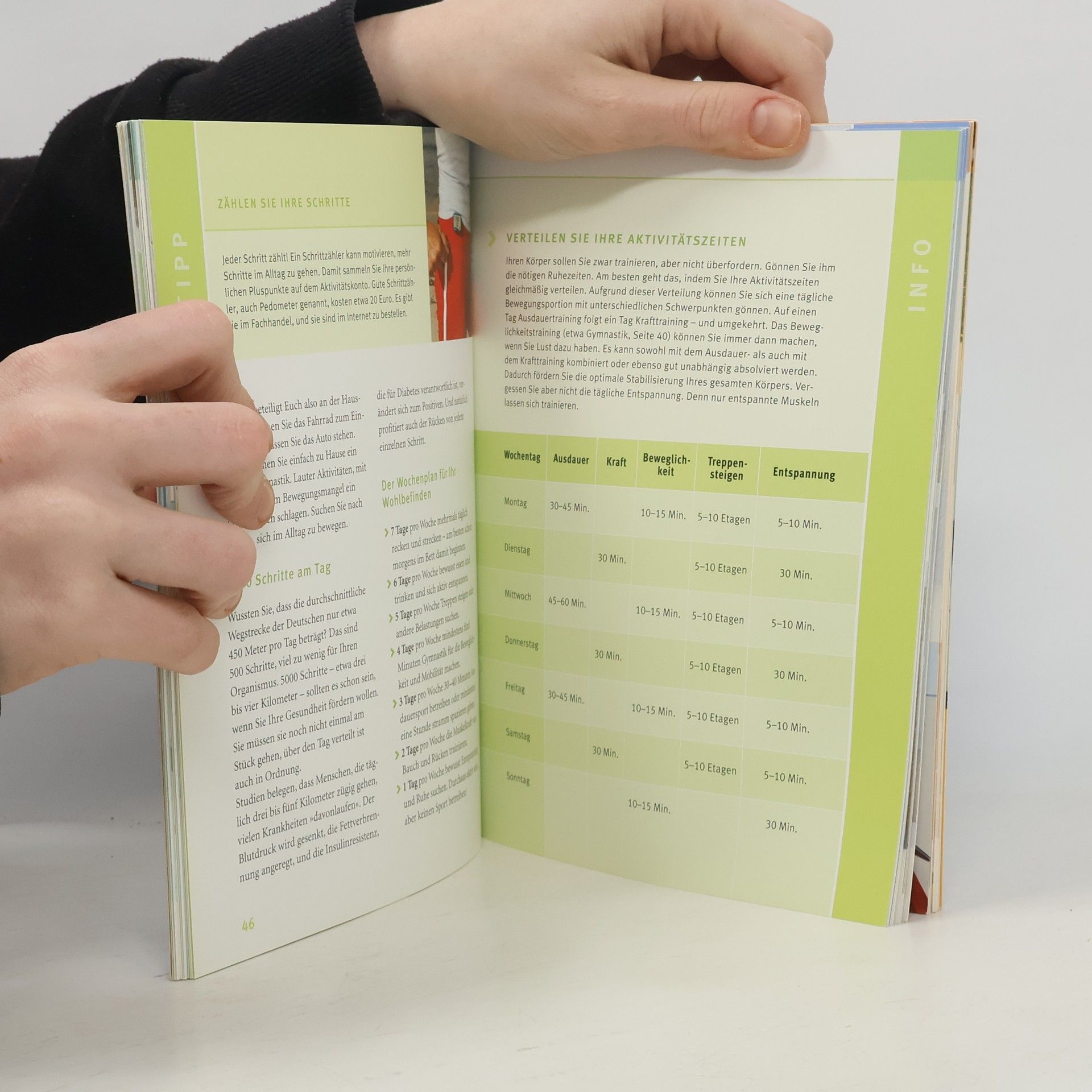 Hier kommt effektive Hilfe, für alle, die unter Rückenbeschwerden leiden. Und das sind immerhin rund 80% der Bevölkerung! Zurückzuführen ist dieser Zustand auf mangelnde Bewegung und auf eine untrainierte und vernachlässigte Muskulatur. Der zu unrecht beschuldigte Verursacher, die Bandscheibe, ist nur selten die Ursache (in 3%-5% der Fälle), wird aber jährlich rund 60.000-mal operiert. Höchste Zeit, dem Rücken das zu geben, was er braucht: einerseits alltägliche Bewegung wie spazieren gehen, Nordic Walking, radeln & Co. Andererseits ein Aktivierungsprogramm für Wirbelsäule, Rücken- und Bauchmuskeln. Und da Rückenprobleme häufiger psychisch bedingt sind, als man bisher angenommen hat, gibt es ein spezielles Anti-Stress-Training. Was aber nützen die besten Übungen, wenn sie nicht in den Alltag übernommen werden? Nichts. Damit das nicht geschieht, können die Leserinnen die extra vorgestellten Alltags-Programme in nahezu allen Lebenslagen absolvieren.