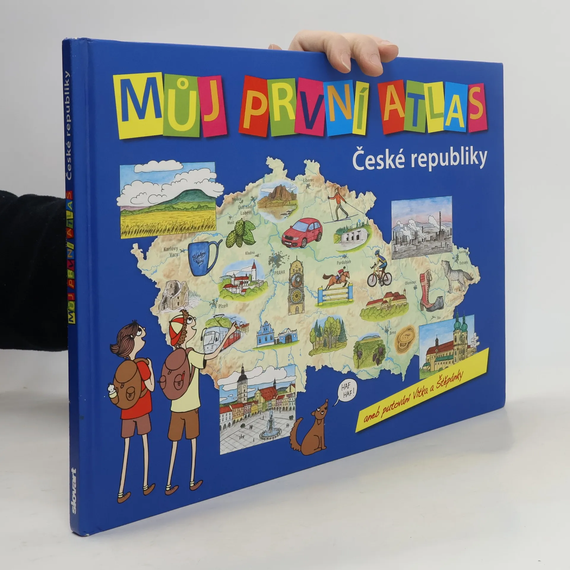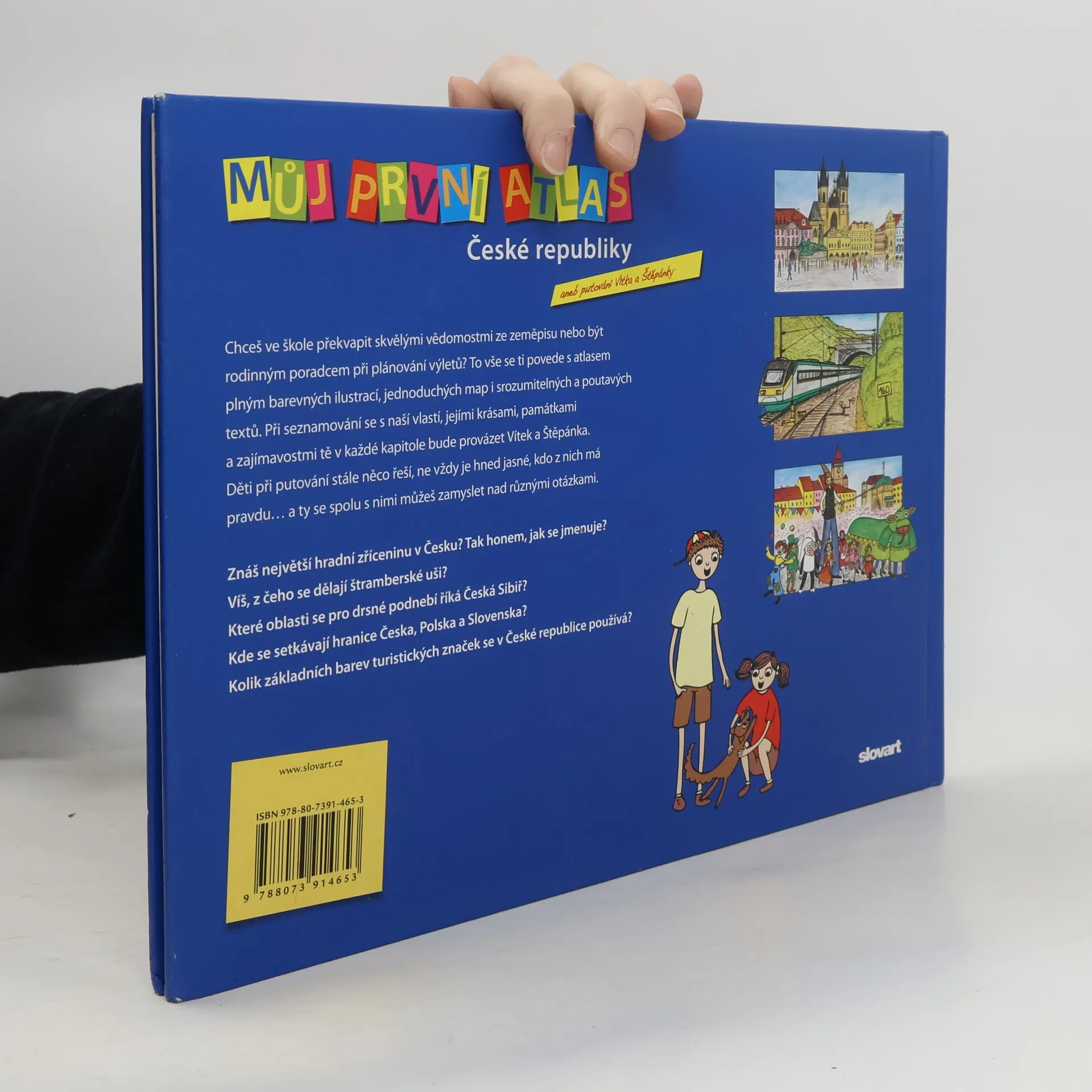 Překvapit ve škole skvělými vědomostmi ze zeměpisu, být rodinným poradcem při plánování výletů, to vše se dětem povede s atlasem plným barevných ilustrací, jednoduchých map i srozumitelných a poutavých textů. Při seznamování se s hlavními charakteristikami naší vlasti, jejími krásami, památkami a zajímavostmi čtenáře v každé kapitole provází Vítek a Štěpánka. Při putování děti stále něco řeší, ne vždy je hned jasné, kdo z nich má pravdu… a čtenář se spolu s nimi zamýšlí nad různými otázkami (odpovědi si ověřuje na konci knihy). Hravým způsobem se tak dozví třeba to, která zřícenina je v Česku největší, jestli v místech skalních soutěsek v severních Čechách bylo kdysi moře, kde se nachází zoo s obrovskými výběhy, kterými lze projíždět autem či autobusem a pozorovat zvířata, kde se setkávají hranice Česka, Polska a Slovenska