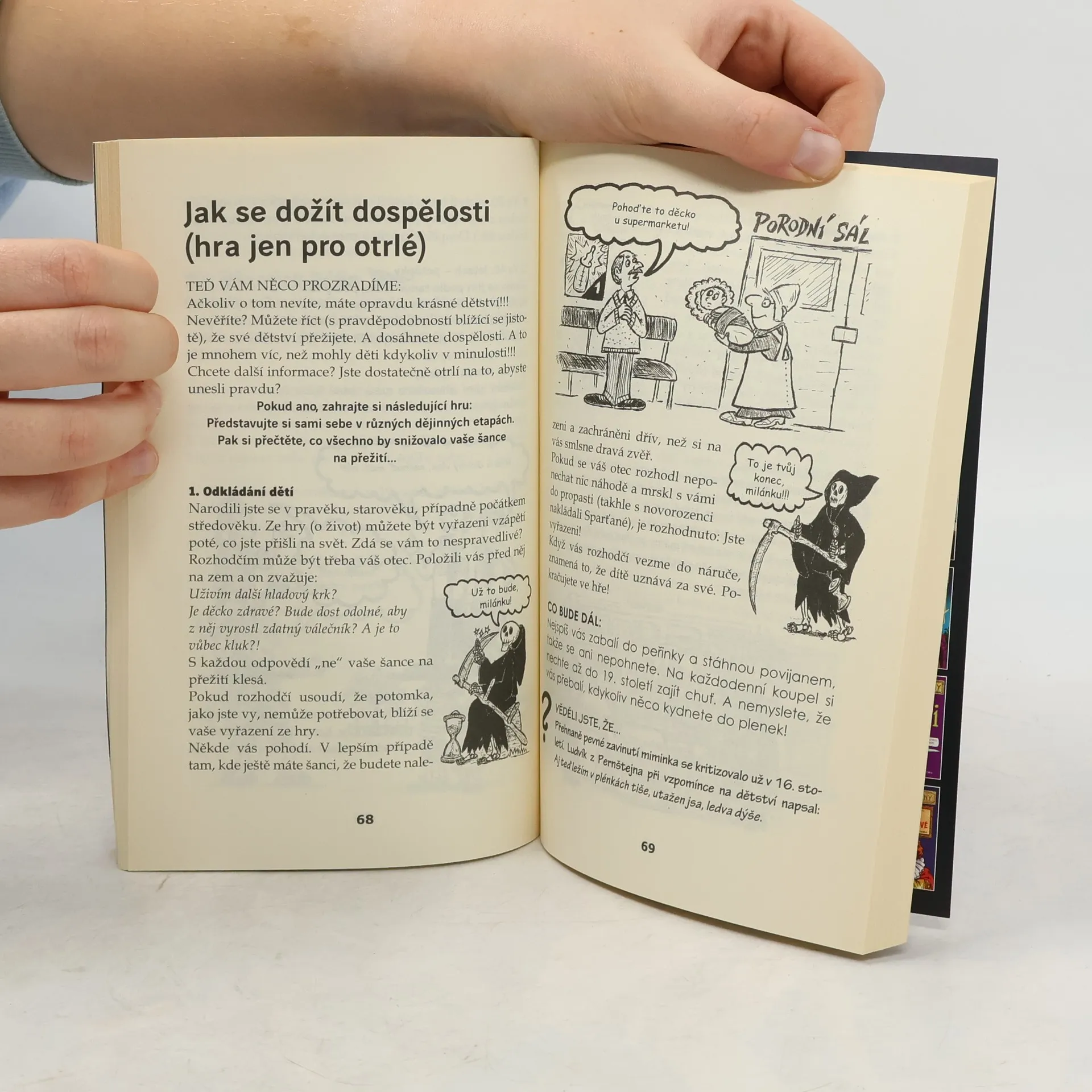 Štve vás vaše otravné dětství a vaši nudní rodiče? Myslíte si, že horší už to být nemůže? Jste si jistí, že by se vám bez rodičů a jejich věčného poučování žilo líp? Zkuste zodpovědět následující otázky: Chtěli vás rodiče někdy zapřáhnout do pluhu místo tažného vola, půjčit věřiteli, abyste odpracovali jejich dluhy, nebo obětovat bohům? Nechtěli?! Tak vidíte! V dřívějších dobách bývalo dětství daleko těžší. A v této knížce si můžete přečíst, jak žily děti v pravěku, ve středověku nebo v 19. století, jak na tom byli Němcová, Neruda, Smetana či Masaryk. Neváhejte a změňte svůj nudný život - rodiče budou poslouchat vás.