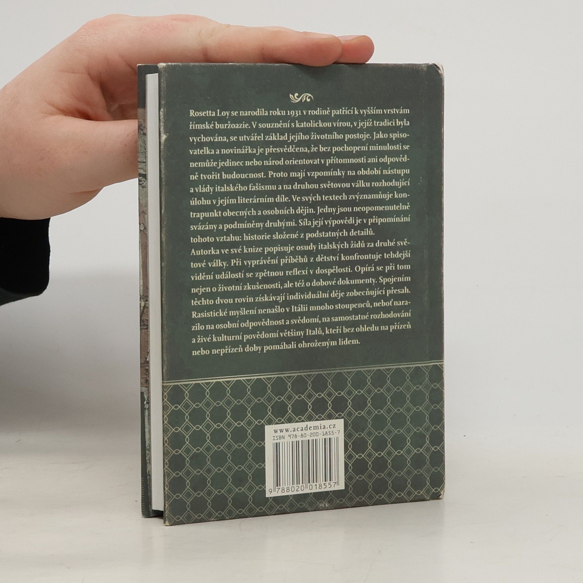 Autorka popisuje ve své knize osudy italských židů za 2. světové války. Při vyprávění příběhů ze svého dětství konfrontuje dětské vidění událostí s dospělým postojem, opírajícím se o životní zkušenosti a dokumenty doby. Spojením těchto dvou rovin tak individuální příběhy získávají zobecňující přesah. Rasistické myšlení nenašlo v Itálii mnoho příznivců, neboť narazilo na individuální odpovědnost a svědomí, na samostatné rozhodování a živé kulturní povědomí většiny Italů, kteří bez ohledu na přízeň nebo nepřízeň doby pomáhali ohroženým lidem.