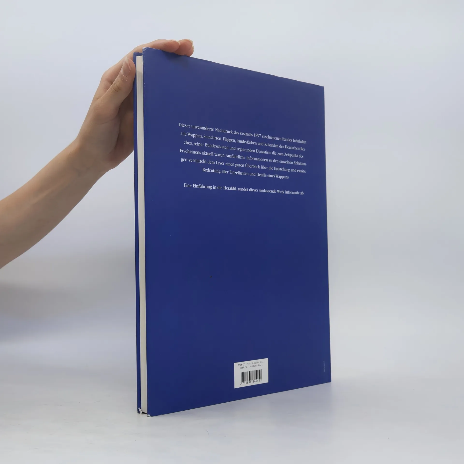 Dieser unveränderte Nachdruck des erstmals 1897 erschienenen Bandes beinhaltet alle Wappen, Standarten, Flaggen, Landesfarben und Kokarden des Deutschen Reiches, seiner Bundesstaaten und regierenden Dynastien, die zum Zeitpunkt des Erscheinens aktuell waren. Ausführliche Informationen zu den einzelnen Abbildungen vermitteln dem Leser einen guten Überblick über die Entstehung und exakte Bedeutung aller Einzelheiten und Details eines Wappens.