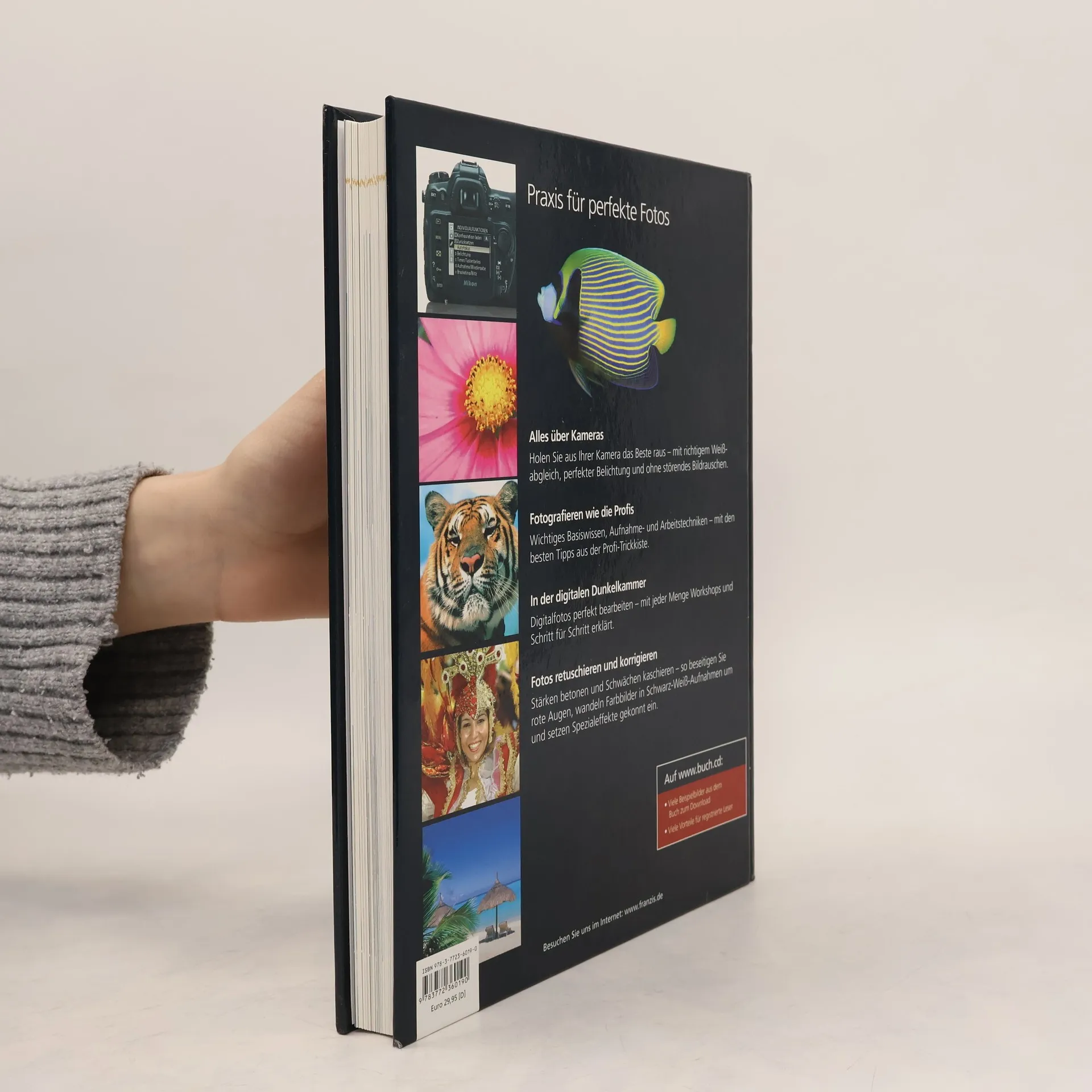 Alles über Kameras Holen Sie aus Ihrer Kamera das Beste raus - mit richtigem Weißabgleich, perfekter Belichtung und ohne störendes Bildrauschen. Fotografieren wie die Profis Wichtiges Basiswissen, Aufnahme- und Arbeitstechniken - mit den besten Tipps aus der Profi-Trickkiste. In der digitalen Dunkelkammer Digitalfotos perfekt bearbeiten - mit jeder Menge Workshops und Schritt für Schritt erklärt. Fotos retuschieren und korrigieren Stärken betonen und Schwächen kaschieren - so beseitigen Sie rote Augen, wandeln Farbbilder in Schwarz-Weiß- Aufnahmen um und setzen Spezialeffekte gekonnt ein.