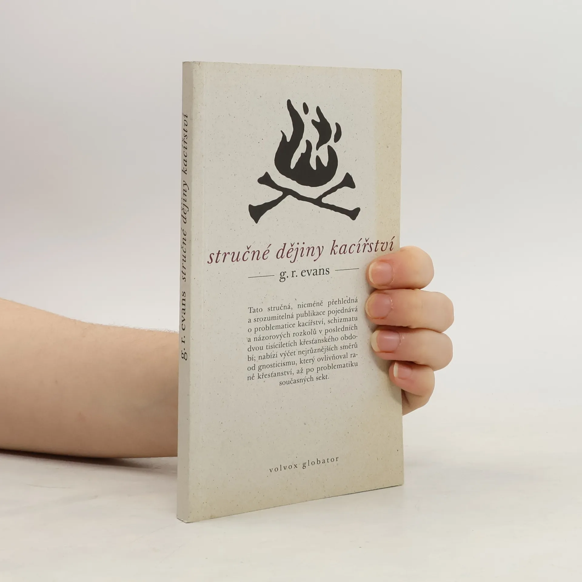 Tato stručná, přesto přehledná a srozumitelná publikace pojednává o problematice kacířství, schizmatu a názorových rozkolů v posledních dvou tisíciletích křesťanského období. Nabízí výčet nejrůznějších heretických směrů od gnosticismu, který ovlivňoval rané křesťanství, až po problematiku současných sekt. Pojem hereze vyvolává nejrůznější představy, od mučedníků smířených se smrtí za své náboženské přesvědčení až po sektářství s jeho prapodivnými a tajemnými rituály. Publikace popisuje bouřlivé dějiny kacířství a ukazuje jak a kdy začala církev, ohrožovaná alternativními ideály, stále důrazněji prosazovat pravověrnost a zkoumá sociální i politické podmínky, v nichž hereze vznikaly, i to, jak církev s jejich stoupenci nakládala a jaké jim vyměřovala tresty, končící mnohdy těžkým žalářem či upálením na kacířské hranici. G. R. Evans přednáší historii na univerzitě v Cambridge a je autorem řady historických, teologických a filozofických publikací.