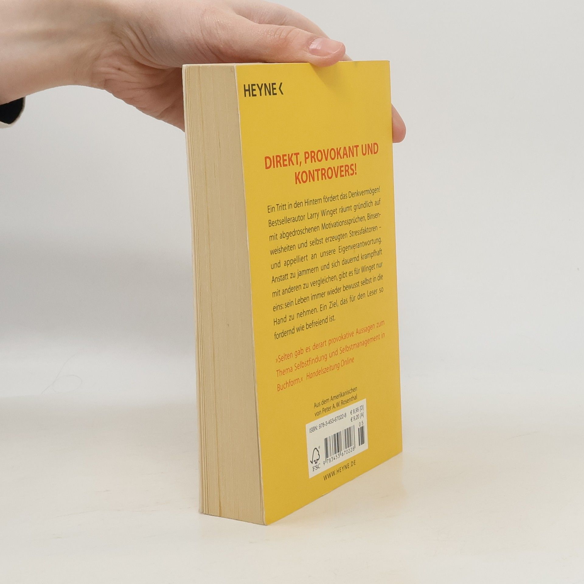 Direkt, provokant und kontrovers! Ein Tritt in den Hintern fördert das Denkvermögen! Bestsellerautor Larry Winget räumt auf mit abgedroschenen Motivationssprüchen, Binsenweisheiten und selbst erzeugten Stressfaktoren – und appelliert an unsere Eigenverantwortung. Anstatt zu jammern und sich dauernd krampfhaft mit anderen zu vergleichen, gibt es für Winget nur eins: sein Leben immer wieder bewusst selbst in die Hand zu nehmen. Ein Ziel, das für den Leser so fordernd wie befreiend ist.• Eine gnadenlose Anleitung zur Selbstbestimmung• Ein Buch, das alle üblichen Motivationsratgeber in den Schatten stellt: praxisorientiert, ehrlich und aufrüttelnd