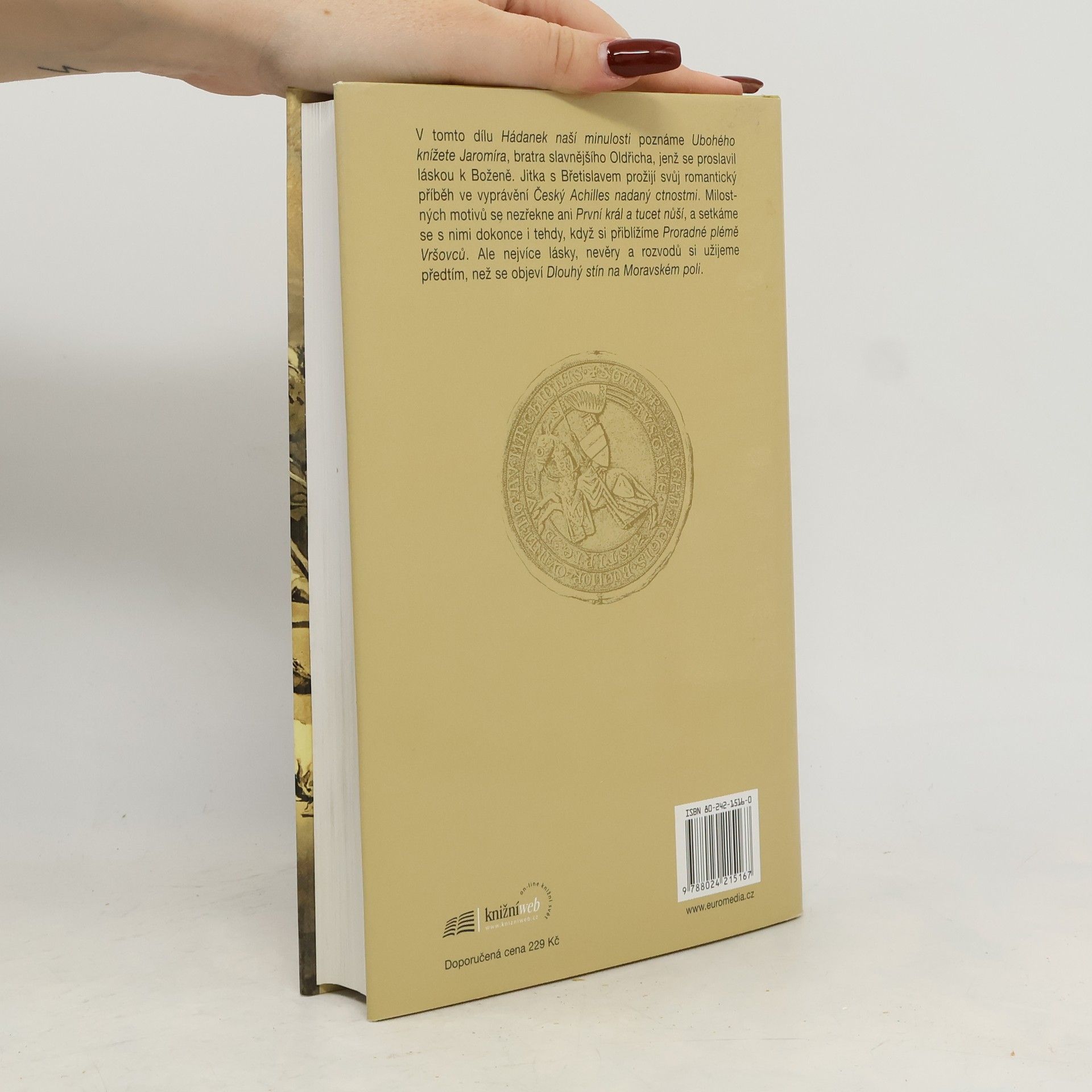 V tomto dílu Hádanek naší minulosti s podtitulem Dlouhý stín na Moravském poli se projdeme téměř třemi stoletími, během nichž se setkáme s dramatickými událostmi ovlivňujícími český stát. Klíčovým motivem je láska, která se snadno a rychle mění v nenávist, posilující silné a srážející slabé. Na dvou známých dvojicích, Boženě a Oldřichovi, a Jitce s Břetislavem, si ukážeme, jak tento motiv formuje jejich osudy. První král a tucet nůší také nezapomínají na milostné motivy, stejně jako Proradné plémě Vršovců. Nejvíce lásky, nevěry a rozvodů však zažijeme před příchodem Dlouhého stínu na Moravském poli. V dalším dílu, Jasný pohled slepého krále, se přesuneme do 14. století, kdy lucemburská dynastie nahradila Přemyslovce. Začneme příběhem Láska setnutá ostrým prknem, který se zaměří na slavnou mileneckou dvojici a Branibory v Čechách. Následně se pokusíme odhalit důvody Tragické popolední siesty, kdy vymřel rod Přemyslovců. Napínavé bude i pátrání po Muži samostatném, neboli kronikáři Dalimilovi. Jan Lucemburský opět pronese své slavné Toho bohdá nebude na pláni u Kresčaku a na závěr se podíváme na jeho syna a odhalíme Nejsladší tajemství Otce vlasti.