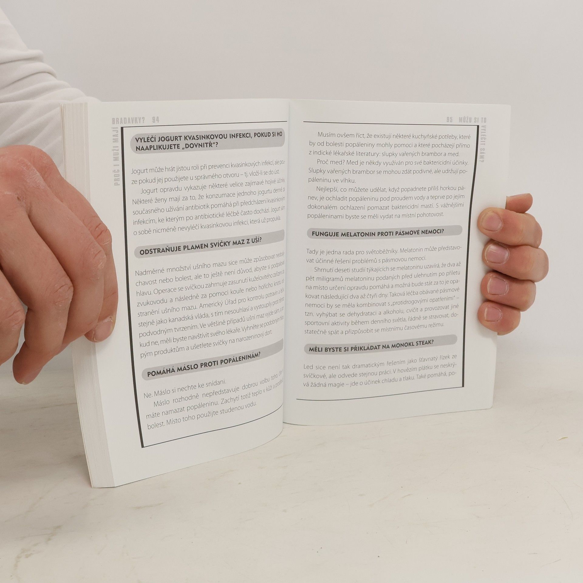 Otázky, na které se normálně zeptáte až po třetím panáku Napadla vás někdy otázka, kterou jste se styděli položit svému lékaři? Možná by vám ke kuráži pomohla sklenička něčeho ostřejšího nebo raději rovnou tři. Ale jestli se chcete např. dozvědět proč i muži mají bradavky, jestli káva brzdí růst, zda můžete umřít strachy nebo se dozvědět co jeto škytavka a jak se jí lze zbavit, pak se právě z této knihy dozvíte odpovědi na stovky takových otázek.