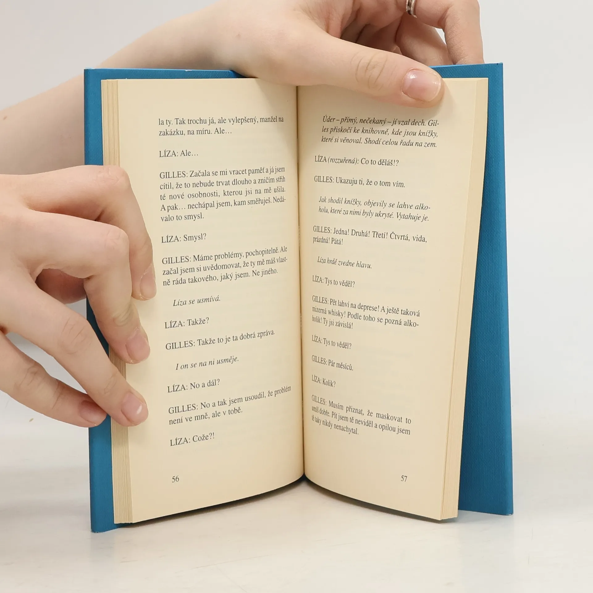 Manžel Gilles se po nejasném úrazu hlavy a ztrátě paměti vrací z nemocnice, manželka Líza se mu snaží pomoci a připomíná jejich dosavadní společný život. Postupně vycházejí najevo překvapivé okolnosti a čtenář se zatajeným dechem sleduje měnící se Líziny výpovědi a stále nové a nové verze jejich minulosti. Mohou z toho s takovou tíhou prožitků vůbec vyváznout a žít spolu dál? Má v dnešní době manželství ještě smysl?... celý text