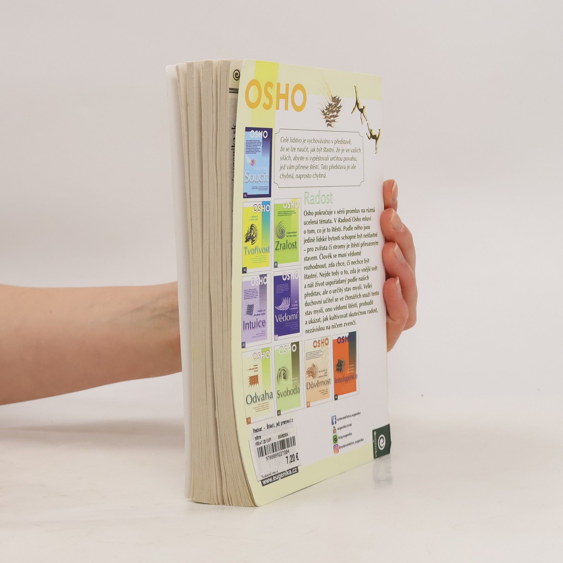 Osho pokračuje v sérii promluv na různá ucelená témata. V Radosti Osho mluví o tom, co je štěstí. Podle něho jsou jedině lidské bytosti schopné být nešťastné - pro zvířata či stromy je štěstí přirozeným stavem. Člověk se musí vědomě rozhodnout, zda chce, či nechce být šťastný. Nejde tedy o to, zda je vnejší svět a náš život uspořádaný podle našich představ, ale o určitý stav mysli. Velký duchovní učitel se ve čtenářích snaží tento stav mysli, ono vědomí šťěstí, probudit a ukázat, jak kultivovat skutečnou radost, nezávislou na ničem zvenčí.