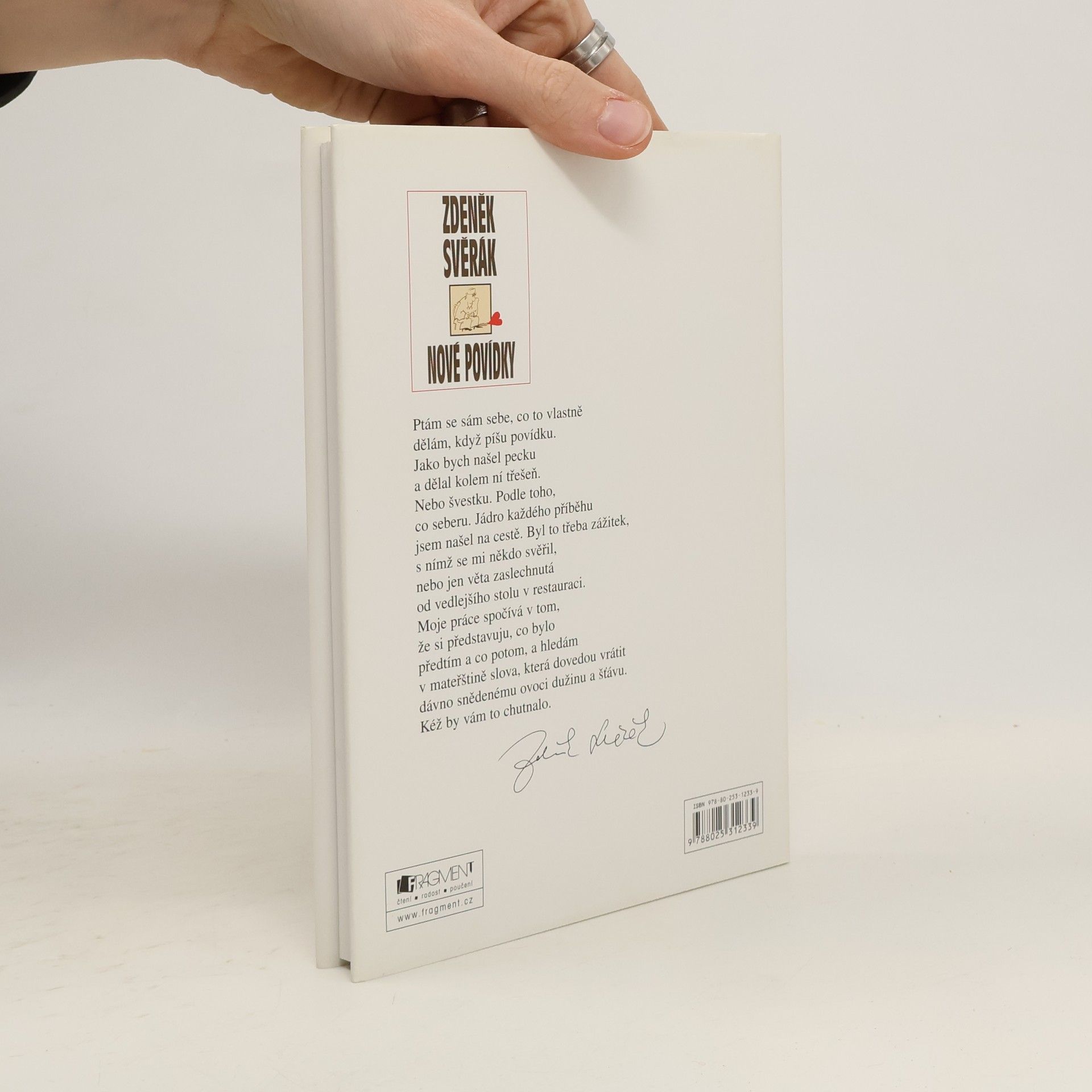 Ptám se sám sebe, co to vlastně dělám, když píšu povídku. Jako bych našel pecku a dělal kolem ní třešeň. Nebo švestku. Podle toho, co seberu. Jádro každého příběhu jsem našel na cestě. Byl to třeba zážitek, s nímž se mi někdo svěřil, nebo jen věta zaslechnutá od vedlejšího stolu v restauraci. Moje práce spočívá v tom, že si představuju, co bylo před tím a co potom, a hledám v mateřštině slova, která dovedou vrátit dávno snědenému ovoci dužinu a šťávu. Kéž by vám to chutnalo. Zdeněk Svěrák
