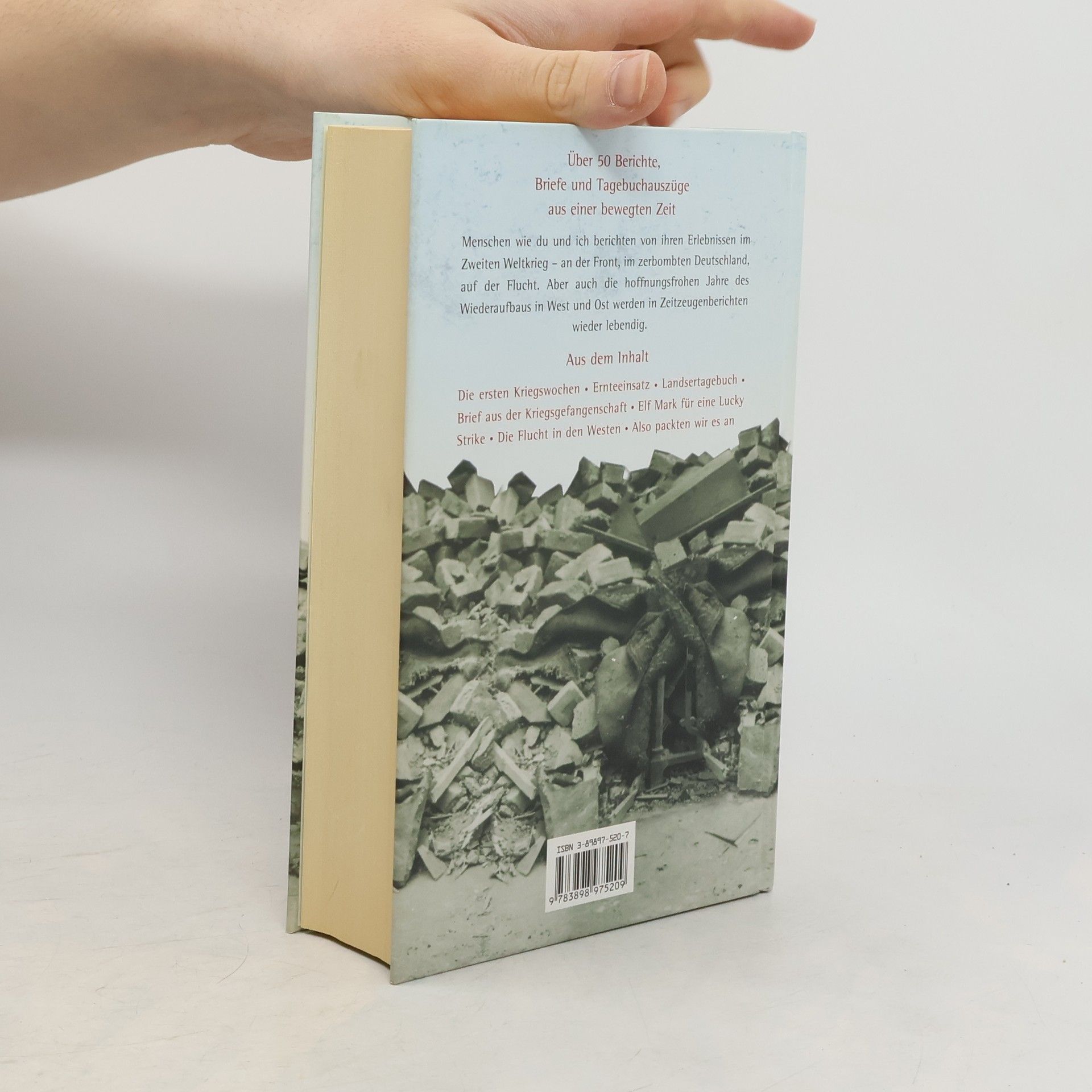 Über 50 Berichte, Briefe und Tagebuchauszüge aus einer bewegten ZeitMenschen wie du und ich berichten von ihren Erlebnissen im Zweiten Weltkrieg - an der Front, im zerbombten Deutschland, auf der Flucht. Aber auch die hoffnungsfrohen Jahre des Wiederaufbaus in West und Ost werden in Zeitzeugenberichten wieder lebendig.