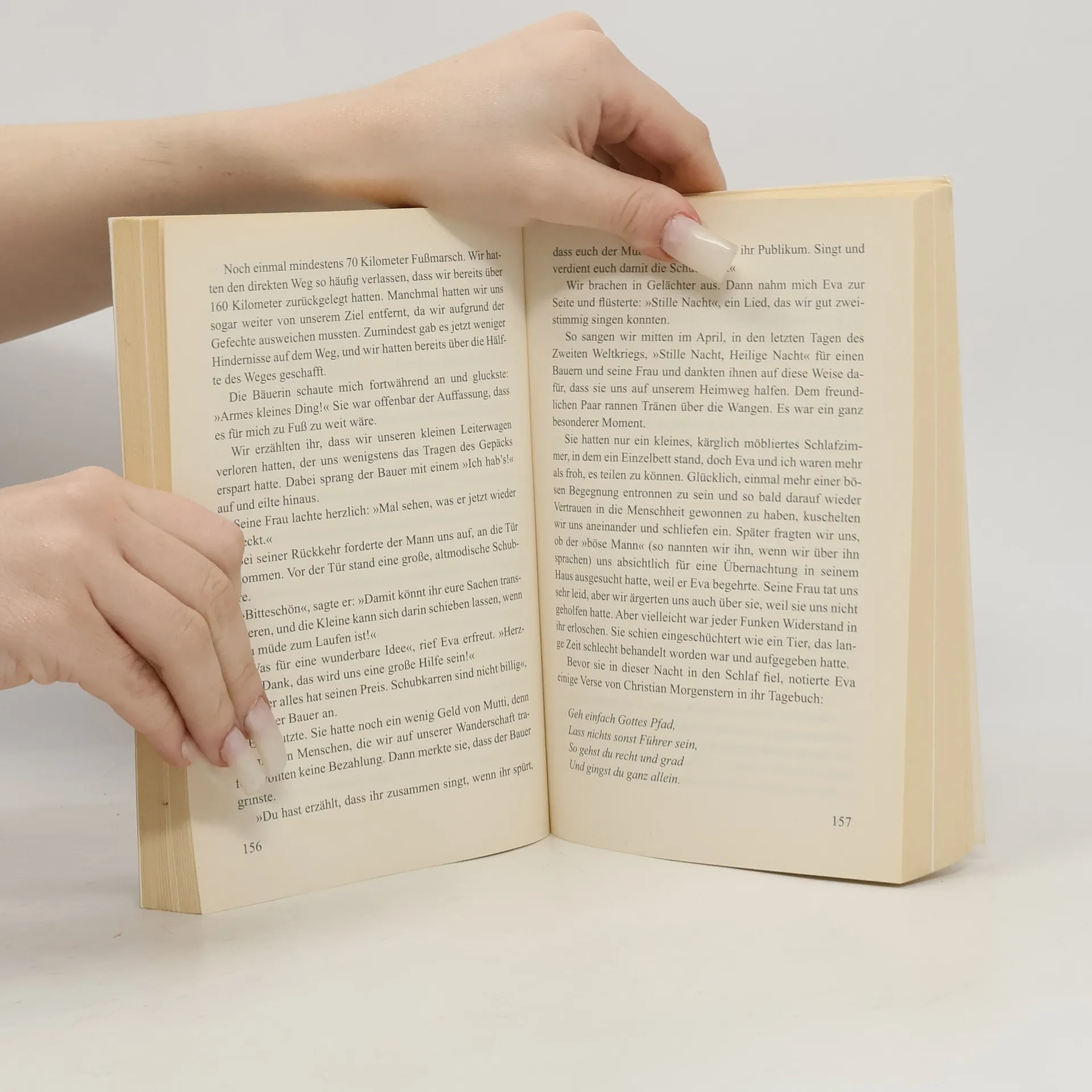 1945: Ein sechsjähriges Mädchen geht mit seiner Schwester auf die gefährlichste Reise ihres Lebens die Suche nach der Mutter. Die Alliierten marschieren in Deutschland ein. Auf der Suche nach ihrer Mutter geraten Bärbel und Eva in die letzten Schlachten des Krieges. Auf ihrer 300 Kilometer langen Odyssee entgehen sie nur knapp den Luftangriffen, die Landstraßen sind von Toten gesäumt. Wie durch ein Wunder überleben die Mädchen, doch Hunger, Angst und Elend hinterlassen Wunden in ihren Seelen, die sie für den Rest ihrer Leben zeichnen.