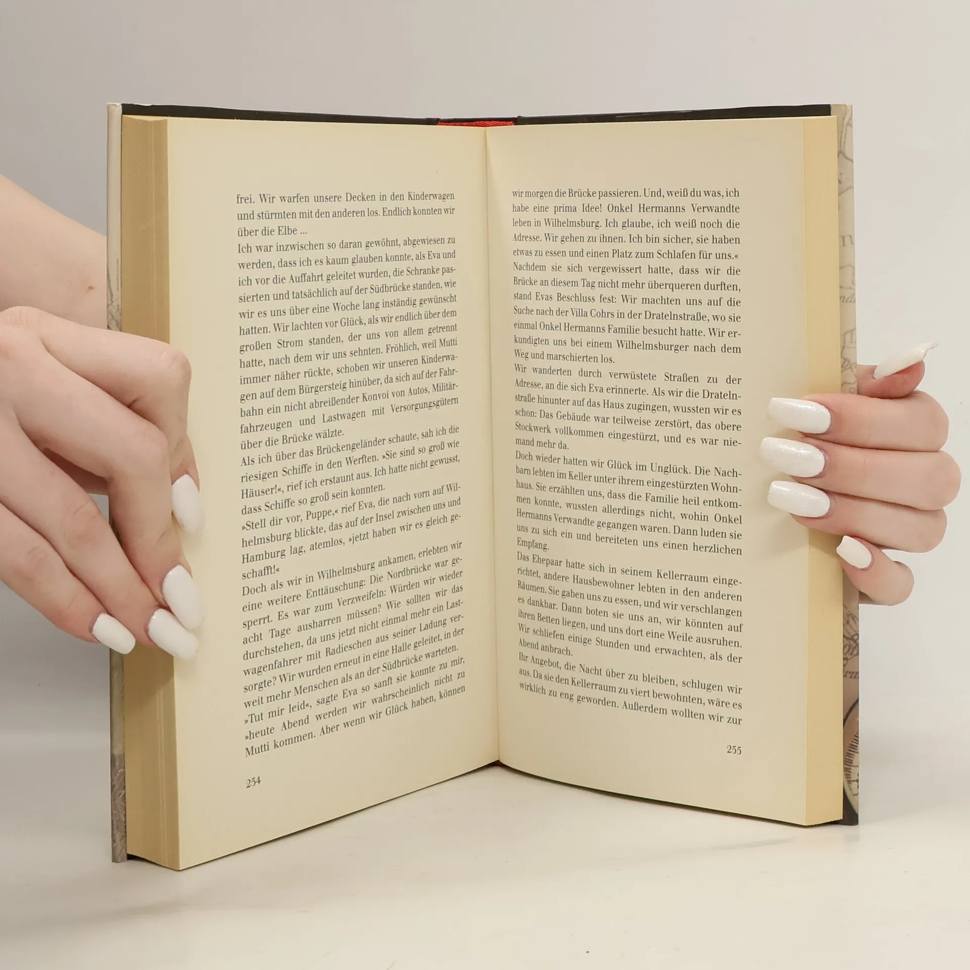 1945: Eva und Bärbel, zwei Schwestern, 19 und 7 Jahre alt, begeben sich kurz vor dem Ende des Zweiten Weltkriegs auf die Suche nach ihrer Mutter. Der Wunsch der beiden Mädchen, wieder bei ihr zu sein, ist stärker als ihre Angst. Und so ziehen sie los und gehen zu Fuß von Tabarz im Thüringischen Wald über Jena und Wiedersdorf bei Halle bis nach Hamburg – quer durch Deutschland, ein Land im Todeskampf, voller Flüchtlinge, Soldaten und Plünderer. Ein emotionales Zeitzeugnis, in dem die Autorin keine historischen Fakten reflektiert, sondern auf berührende Weise darstellt, wie sie zwei Seiten des Krieges erlebte: Hunger und Zerstörung, aber auch Mitgefühl, Zuversicht und Liebe.