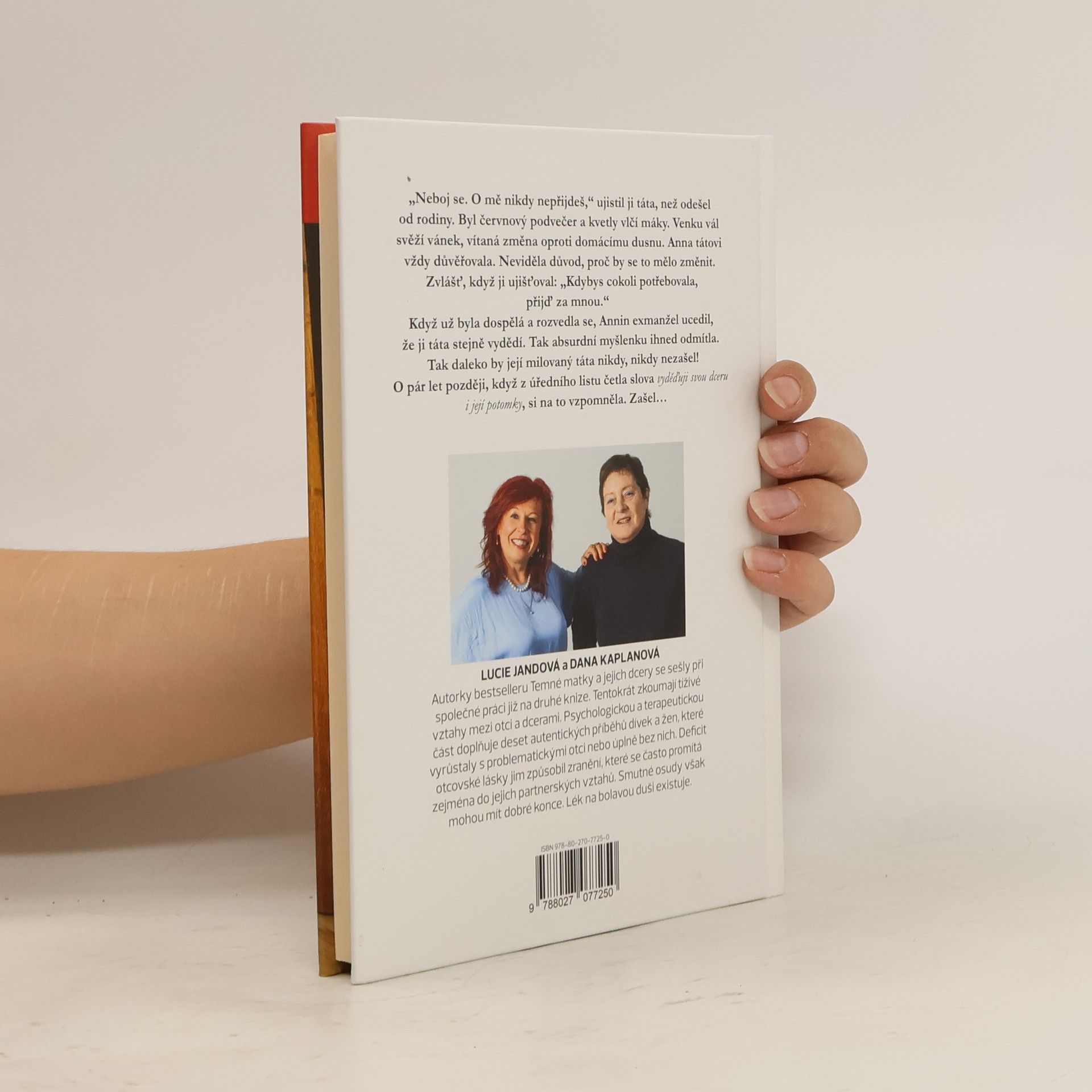 Otcovské zranění je tématem další knihy autorského tandemu Lucie Jandová a Dana Kaplanová. Po úspěšném bestselleru Temné matky a jejich dcery přicházejí s knihou, která se pouští do problematiky tíživých vztahů mezi dcerami a otci. Dopad nefunkčních vazeb, ať už proto, že otec v rodině chyběl, opustil ji, nebo nenaplnil otcovskou roli, bývají pustošivé. Předobraz prvního muže v životě ženy ovlivňuje její partnerské vztahy. Neexistuje důkaz, že každá žena, která má vztahové problémy, prožila zranění od otce. Ale ta, co ho prožije, problémy ve vztazích mívá. Až to vyvolává dojem zákonitého procesu, zaznívá v knize. Autorky se však nespokojily s poukazem na neutěšenost takového stavu, ale hledají řešení. Zamýšlejí se nad otcovstvím jako takovým i nad historickými a společenskými souvislostmi, které ho utvářely. Dospívají k závěru, že zdravá mužská síla ve společnosti chybí a otcovství je třeba vrátit jeho důležitost. V knize zaznívají názory odborníků a psychologů a je doplněna autentickými příběhy žen, které se rozhodly o svém vztahu a otcem a partnery promluvit veřejně.