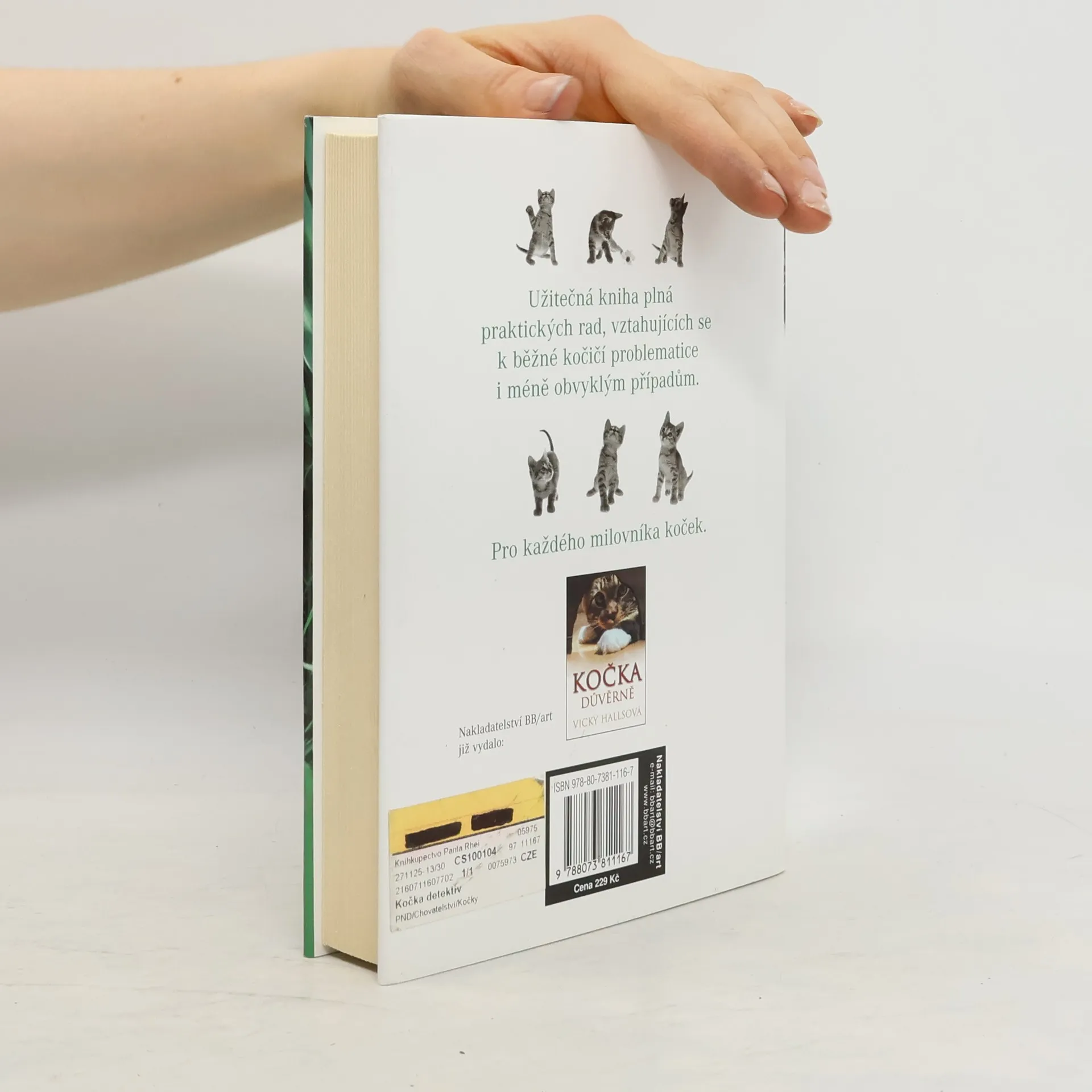 Brousí si vaše kočka drápy o koberce? Znečišťuje dům? Změnilo se v poslední době její chování? Stala se samotářskou nebo je vůči vám či členům vaší rodiny agresivní? Nebo byste prostě jen chtěli pochopit, jakým způsobem přemýšlí? V tomto všeobecném průvodci proslulá poradkyně na otázky kočičího chování Vicky Hallsová pomáhá majitelům zjistit, proč se jejich miláčkové chovají určitým způsobem a přesně popisuje, jak tyto problémy řešit.
