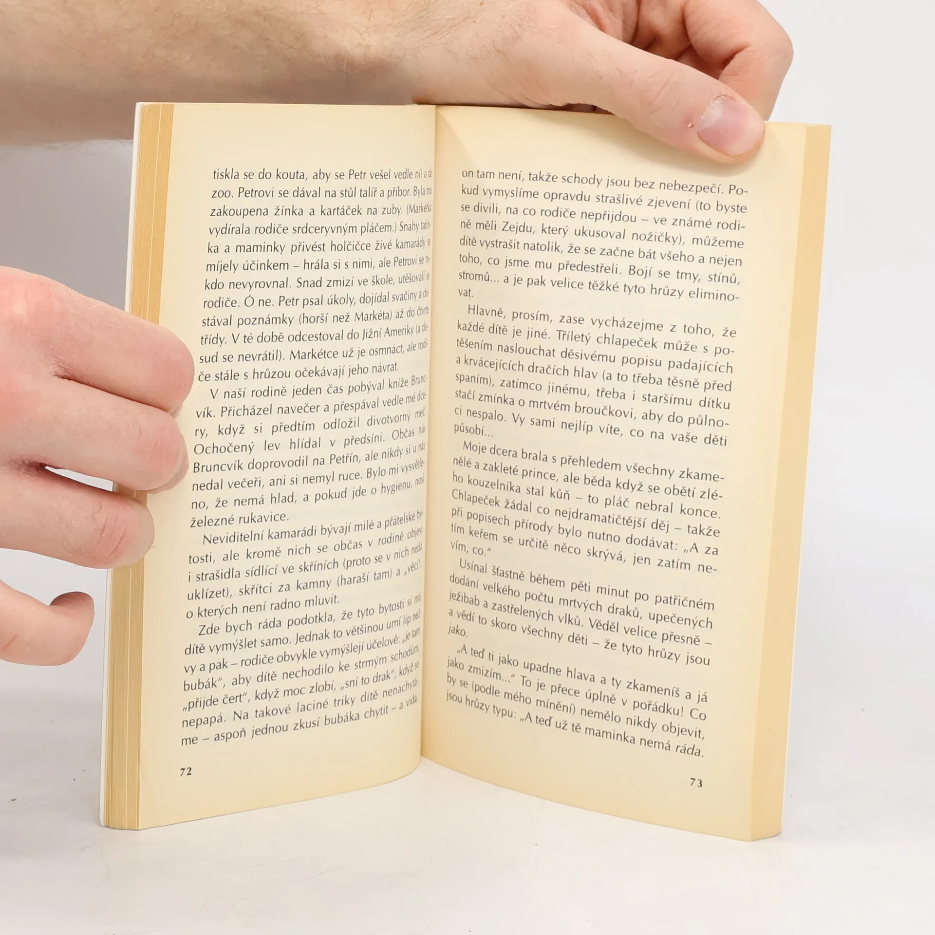 Známá spisovatelka (autorka knížek pro děti) humornou formou popisuje v krátkých tématických kapitolách radosti a strasti rodičů i rodinného života. S pochopením líčí třecí plochy v soužití rodičů a dětí a boří ustálené mýty, jak o výchově doma, tak i ve škole. V jejím podání převažuje láska k dětem a porozumění pro jejich starosti. Z vyprávění vyplývá velice jemné nabádání rodičů, aby měli rádi dítě takové, jaké je, i když nesplňuje všechny naděje, které do něho vkládali.