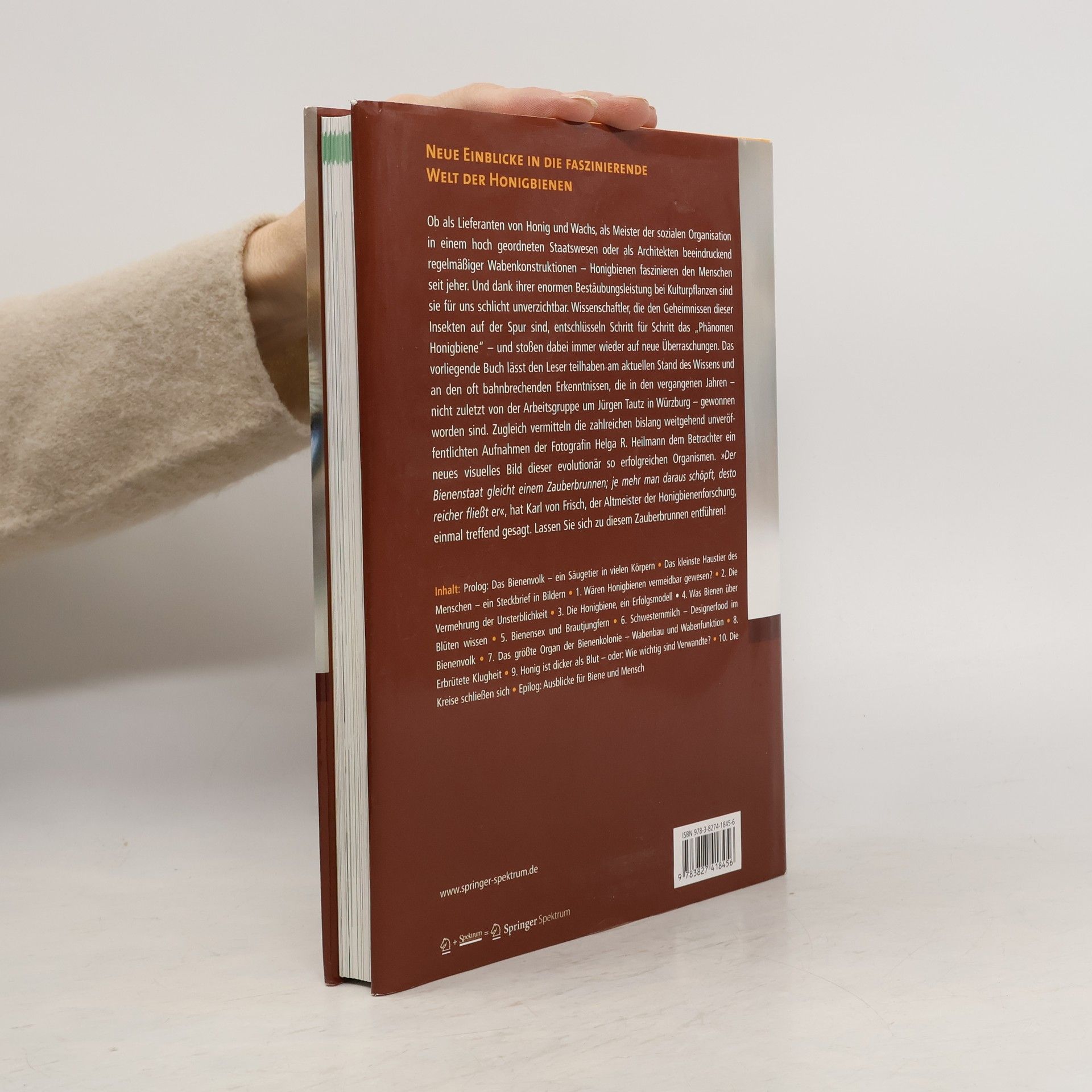 Neue Einblicke in die faszinierende Welt der Honigbienen zeigen deren Bedeutung als Honiglieferanten, soziale Organisatoren und Architekten beeindruckender Wabenkonstruktionen. Ihre unverzichtbare Rolle bei der Bestäubung von Kulturpflanzen macht sie für uns essenziell. Wissenschaftler entschlüsseln das „Phänomen Honigbiene“ und stoßen dabei auf immer neue Überraschungen. Der Leser wird am aktuellen Wissensstand und bahnbrechenden Erkenntnissen, insbesondere von der Arbeitsgruppe um Jürgen Tautz in Würzburg, teilhaben. Zudem vermitteln die bislang weitgehend unveröffentlichten Aufnahmen der Fotografin Helga R. Heilmann ein neues visuelles Bild dieser evolutionär erfolgreichen Organismen. Karl von Frisch beschrieb den Bienenstaat als „Zauberbrunnen“, aus dem man immer reicher schöpfen kann. Wer sich mit diesem Buch beschäftigt, wird der Faszination der Honigbienen kaum entkommen können. Alte Ansätze und neue Untersuchungsmethoden formen das Bild eines Superorganismus, der zu den erstaunlichsten Geschöpfen der Erde zählt. Die hochorganisierte Staatenbildung und ihre Bedeutung für die Artenvielfalt und Landwirtschaft rücken sie ins Interesse von Experten und Laien. Die jüngsten Erkenntnisse aus der Forschung bringen ein neues Verständnis der Honigbiene Apis mellifera hervor und präsentieren diese in verständlicher und unterhaltsamer Weise. Die Texte und beeindruckenden Fotografien führen die Ästhetik und Komplexität des „Phänomen