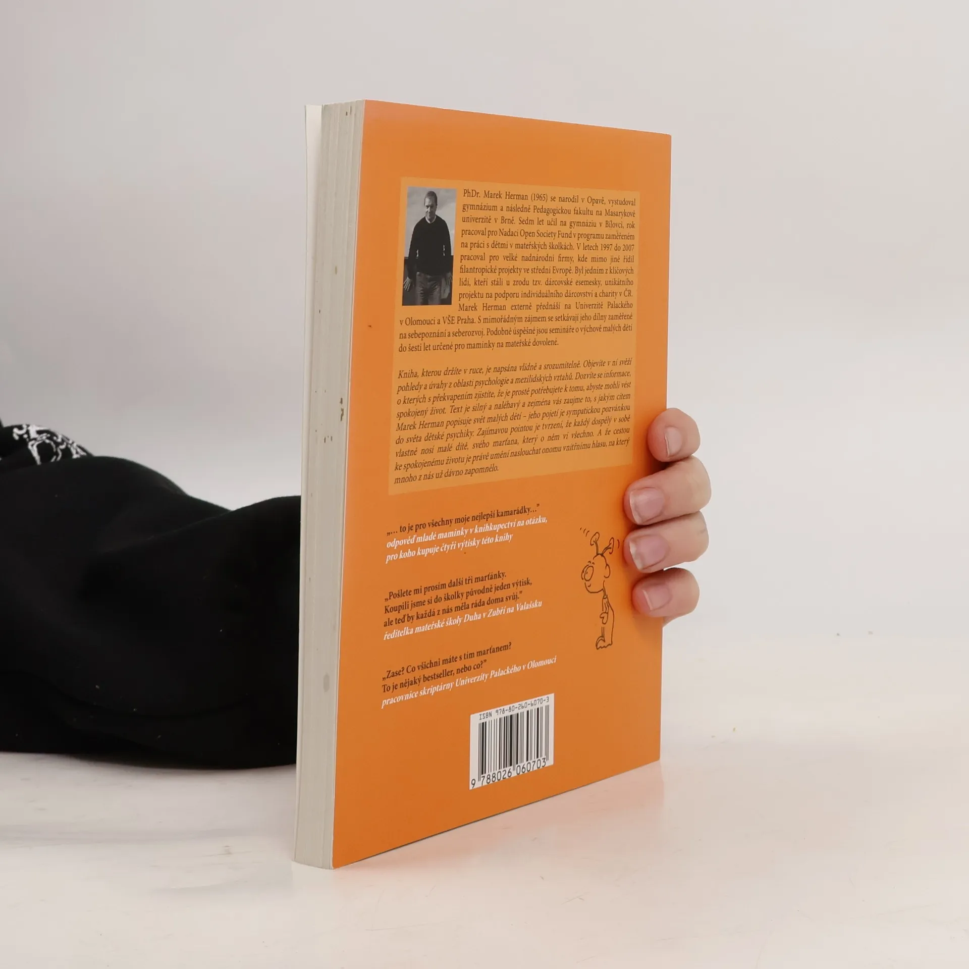 Kniha je cenná hlavně tím, že je napsána odborně, přitom naprosto srozumitelně, autor si s pomyslným čtenářem vlastně povídá. Objevíte v ní svěží pohledy a úvahy z oblasti sebepoznání, mezilidských vztahů a výchovy malých dětí. Dozvíte se informace, o kterých s překvapením zjistíte, že je prostě potřebujete k tomu, abyste mohli vést spokojený život. Text v knize je silný a místy až naléhavý a zejména vás zaujme to, s jakým citem Marek Herman popisuje svět malých dětí.