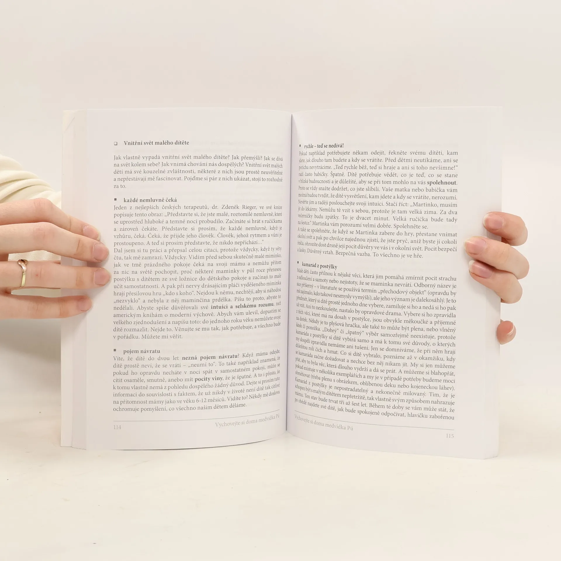 Kniha je cenná hlavně tím, že je napsána odborně, přitom naprosto srozumitelně, autor si s pomyslným čtenářem vlastně povídá. Objevíte v ní svěží pohledy a úvahy z oblasti sebepoznání, mezilidských vztahů a výchovy malých dětí. Dozvíte se informace, o kterých s překvapením zjistíte, že je prostě potřebujete k tomu, abyste mohli vést spokojený život. Text v knize je silný a místy až naléhavý a zejména vás zaujme to, s jakým citem Marek Herman popisuje svět malých dětí.