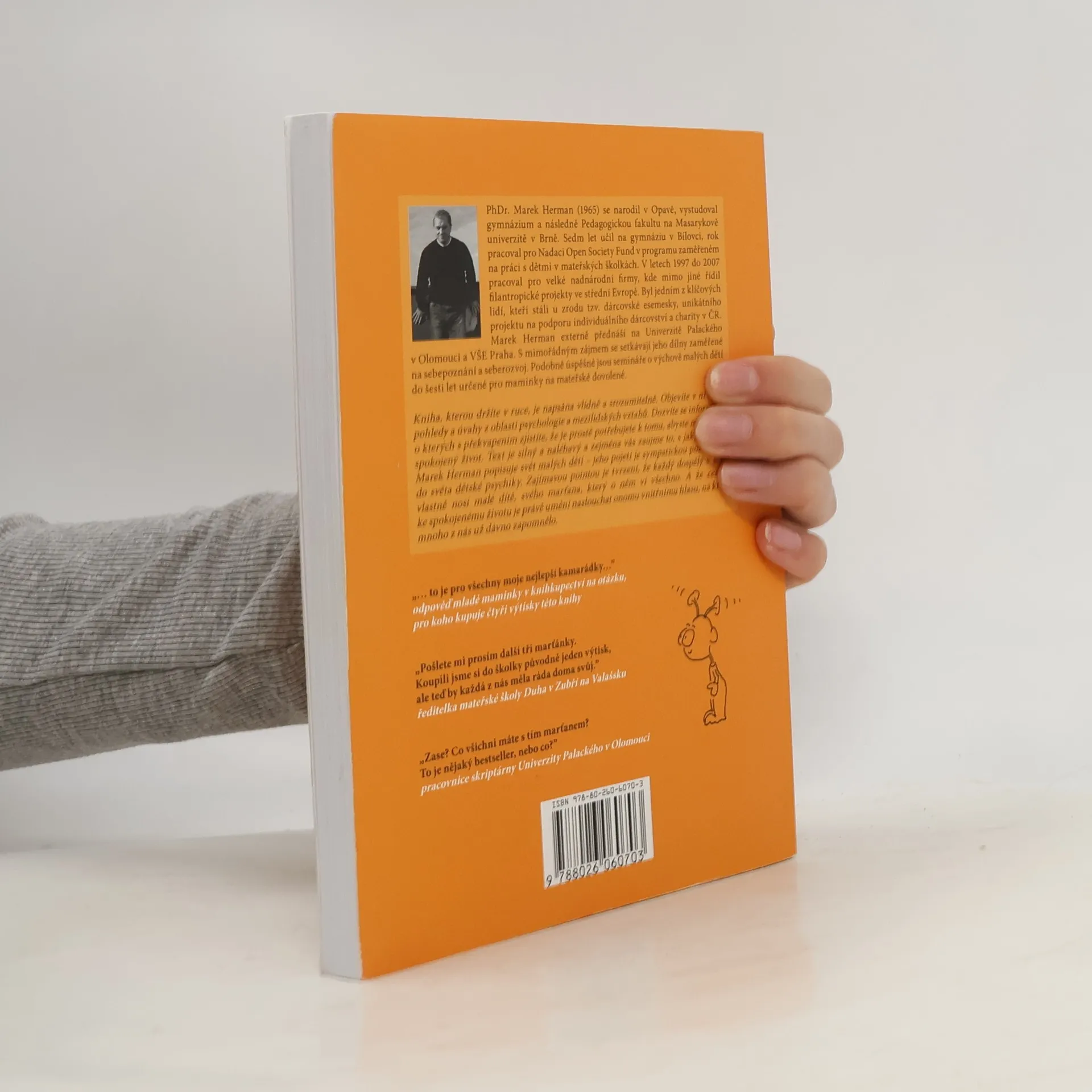 Kniha je cenná hlavně tím, že je napsána odborně, přitom naprosto srozumitelně, autor si s pomyslným čtenářem vlastně povídá. Objevíte v ní svěží pohledy a úvahy z oblasti sebepoznání, mezilidských vztahů a výchovy malých dětí. Dozvíte se informace, o kterých s překvapením zjistíte, že je prostě potřebujete k tomu, abyste mohli vést spokojený život. Text v knize je silný a místy až naléhavý a zejména vás zaujme to, s jakým citem Marek Herman popisuje svět malých dětí.