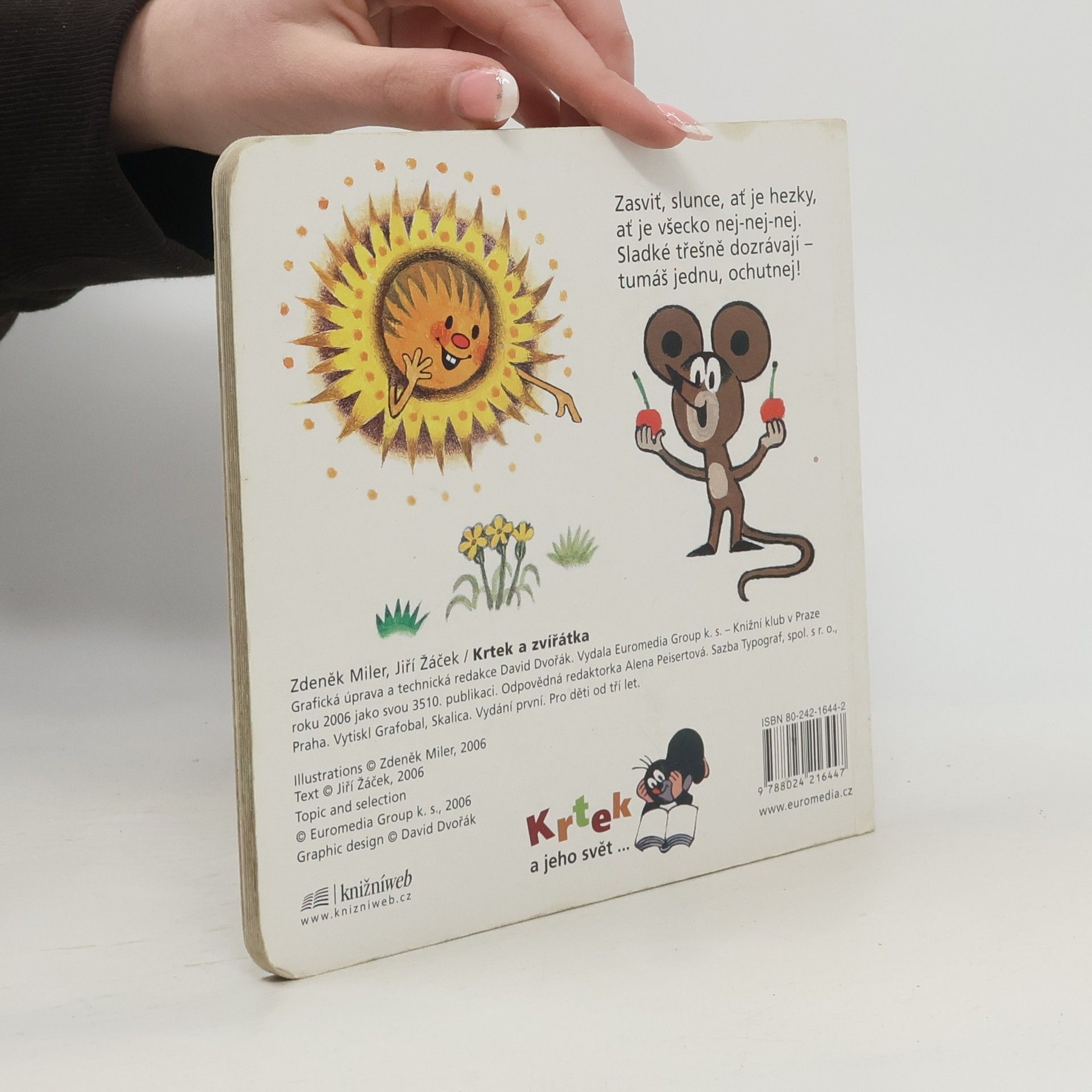 Leporelo pro děti od tří let. Novou řadu poznávacích leporel Krtek a jeho svět lze nazvat první "učebnicí" pro nejmenší čtenáře. První svazek je věnován zvířátkům. Děti se o nich díky veselým obrázkům Zdeňka Milera a vtipným veršům a zvídavým otázkám Jiřího Žáčka dozvědí mnoho zajímavostí.