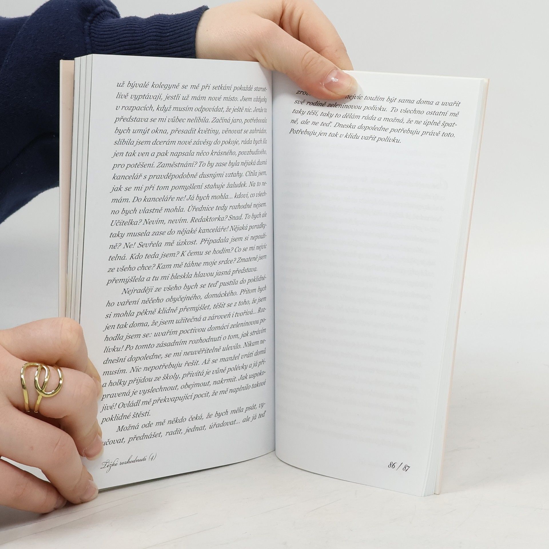 To pravé místo : jak jsem začala a přestala chodit do práce. Novinka známé autorky uvádí čtenáře do světa ženy, která byla mnoho let doma s dětmi a která nově nastoupila do práce. Precizně zachycené dojmy, vztahy a pocity v jednotlivých obrazech skládají jedinečný celkový příběh plný vnitřní dramatičnosti na straně jedné a rodinného tepla na druhé.