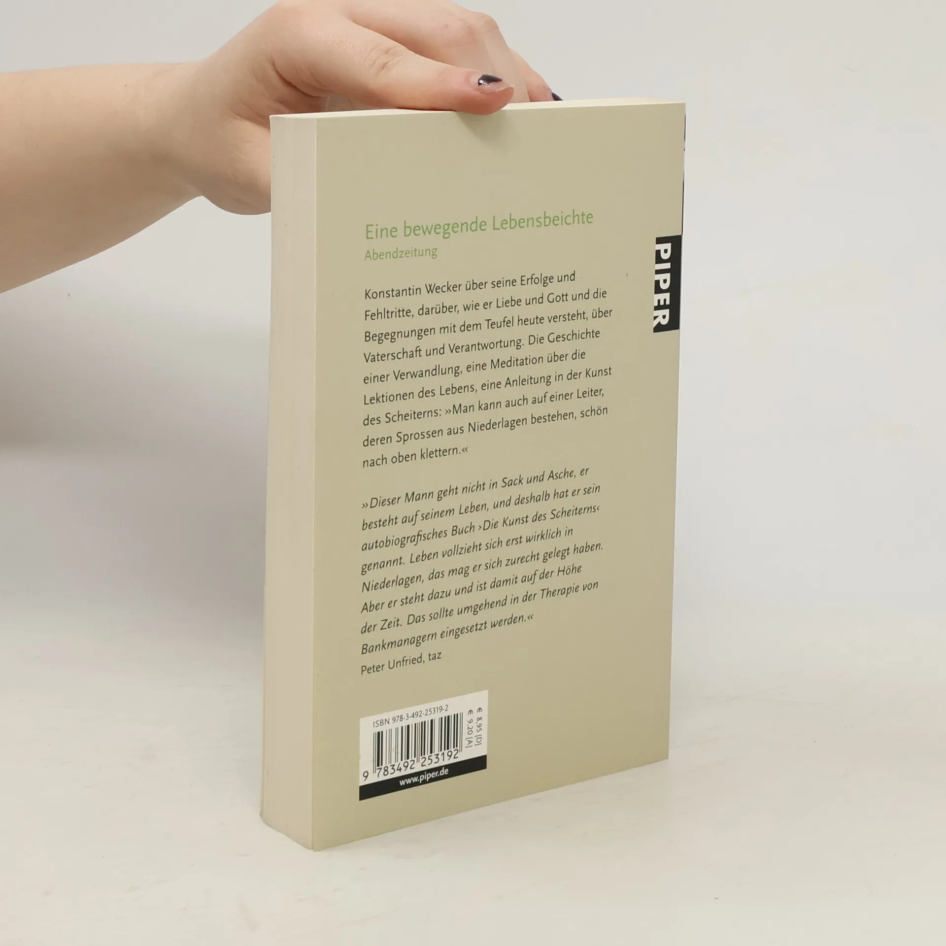 »Man kann auch auf einer Leiter, deren Sprossen aus Niederlagen bestehen, schön nach oben klettern« (Konstantin Wecker). – Wecker über seine Erfolge und Fehltritte, wie er sie heute sieht, darüber, wie er Liebe und Gott und die Begegnungen mit dem Teufel heute versteht, über Vaterschaft und Verantwortung. Die Geschichte einer Verwandlung, eine Meditation über die Lektionen des Lebens, eine Anleitung in der Kunst des Scheiterns.
