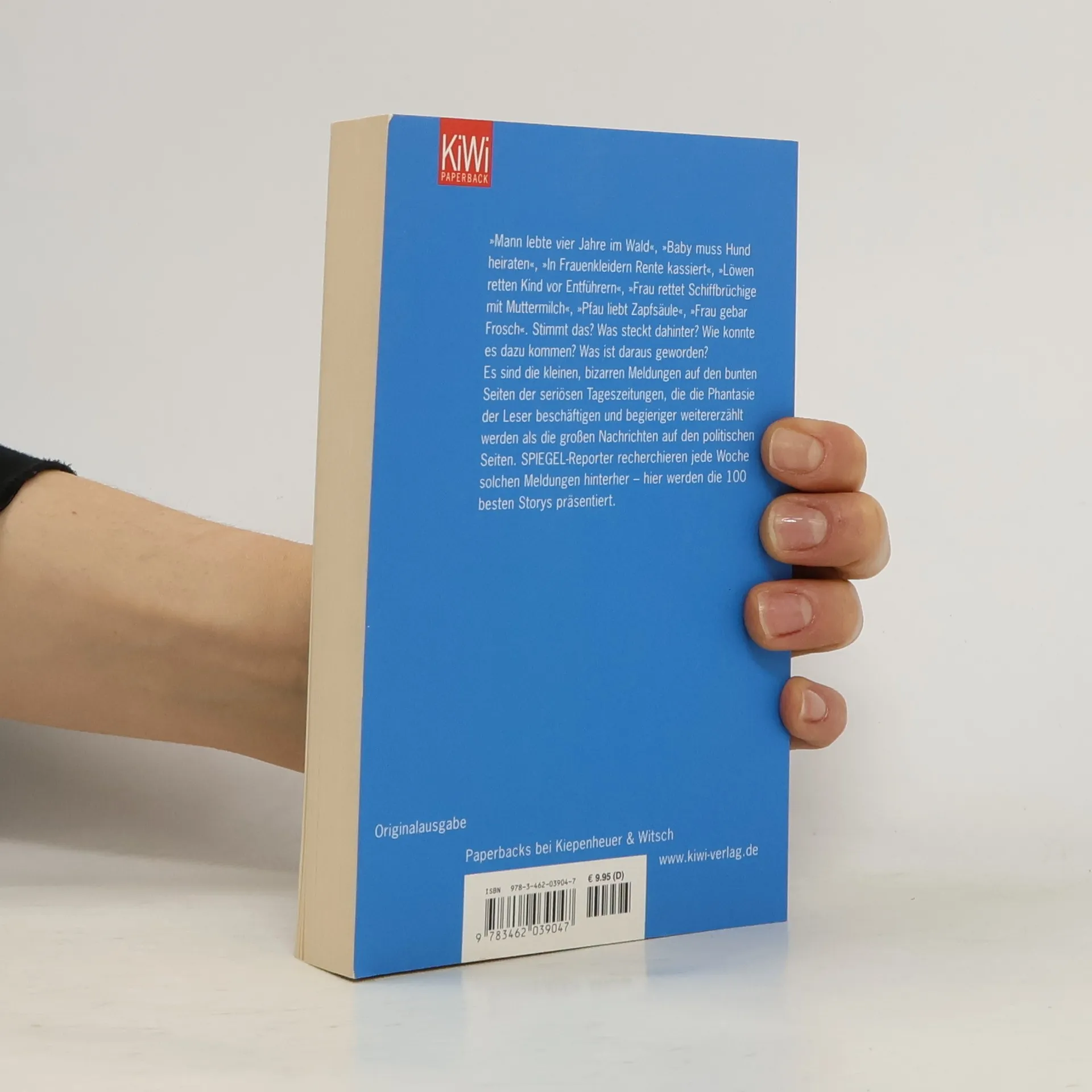 Die kleinen, bizarren Meldungen in den bunten Seiten seriöser Tageszeitungen fesseln oft mehr als große politische Nachrichten. SPIEGEL-Reporter haben über fünf Jahre hinweg solche Geschichten recherchiert und präsentieren hier die besten 100. Von einem Mann, der vier Jahre im Wald lebte, über ein Baby, das einen Hund heiraten muss, bis zu einem Pfau, der eine Zapfsäule liebt – die Vielfalt der Geschichten ist erstaunlich. Hinter jeder Meldung steckt eine eigene Geschichte: Wie kam es dazu? Was ist aus den Protagonisten geworden? Diese Recherchen bieten nicht nur amüsante, sondern auch traurige, rührende und bizarre Einblicke und bilden ein Mosaik unserer Welt, das fremde Sitten und deutsche Zustände beleuchtet. Die Rubrik ist bei SPIEGEL-Lesern äußerst beliebt, viele Leser senden eigene Meldungen zur Recherche ein. Auf SPIEGEL-Online erreichen die Geschichten täglich bis zu 250.000 Klicks. Die gesammelten Storys sind in dreizehn Kapitel unterteilt, die sich mit den elementarsten Aspekten des Lebens befassen: irren, glauben, kämpfen, siegen, rächen, fliehen, suchen, warten, retten, vergessen, täuschen, strafen und lieben.