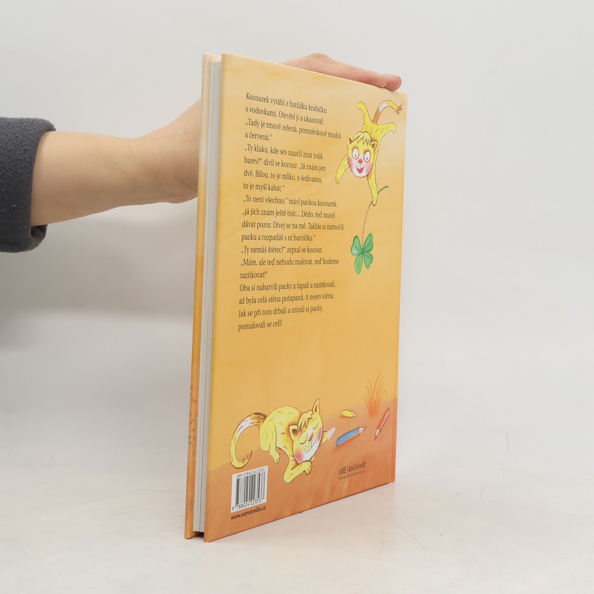 Kocourek Štěstíčko se hrozně těší na prázdniny - jede totiž ke svému kocouřímu dědečkovi. Oba kluci, malý i velký, se v žádném případě nenudí - pořád je co vymýšlet a pořád se něco musí řešit, ať už to jsou nezvladatelné myši na půdě, zlomyslné straky v koruně stromu na dvoře či velkolepá rybářská výprava. I když prší, o dobrodružství není nouze! Dědečkův starý kamarád, obchodník Ofous, nad tím vším jen vrtí hlavou... Půvabný příběh o letních velkých maličkostech, které se v dnešní uspěchané době z dětského světa bohužel začínají vytrácet.
