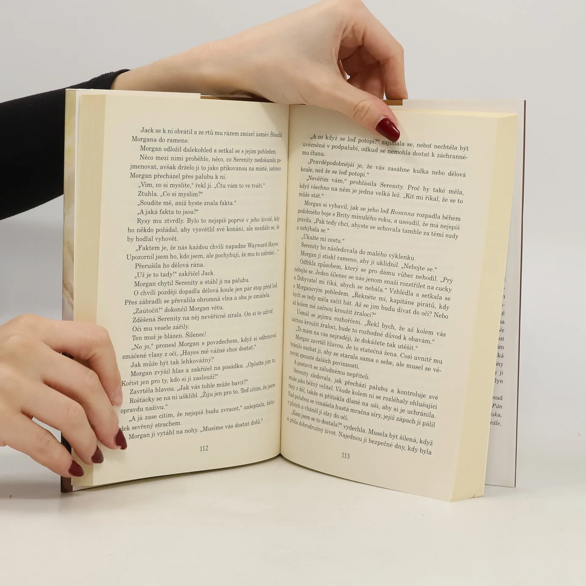 Při vyslovení toho jména tuhla každému krev v žilách. Morgan Drake alias Mořský vlk, postrach oceánu a nelítostný pirát, který jde neohroženě za splněním všech svých cílů. Sotva bychom našli člověka, který by se s ním chtěl osobně setkat Půvabná a odvážná Serenity Jamesová je v tomto ohledu výjimkou. V legendárním pirátovi spatřuje naději, jak se stát slovutnou novinářkou. Pracuje sice v redakci otcových novin, ale dobře ví, že je tam jen trpěna jako tatínkova holčička. Kdyby se jí tak podařilo napsat článek o hrůzyplném Mořském vlkovi, jistě by si vydobyla uznání, po němž tolik touží! Skutečnost je však úplně jiná než její krásné představy. Ani ve snu by ji nenapadlo, že se stane zajatkyní přitažlivého a nebezpečného piráta, jehož hrdinské činy tolik roznítily její fantazii. Snila sice o dobrodružství, to ano, ale netušila, že jej prožije ve vášnivém objetí Morgana Drakea a že pro něj bude ochotna riskovat svůj život, nevinnost i srdce.
