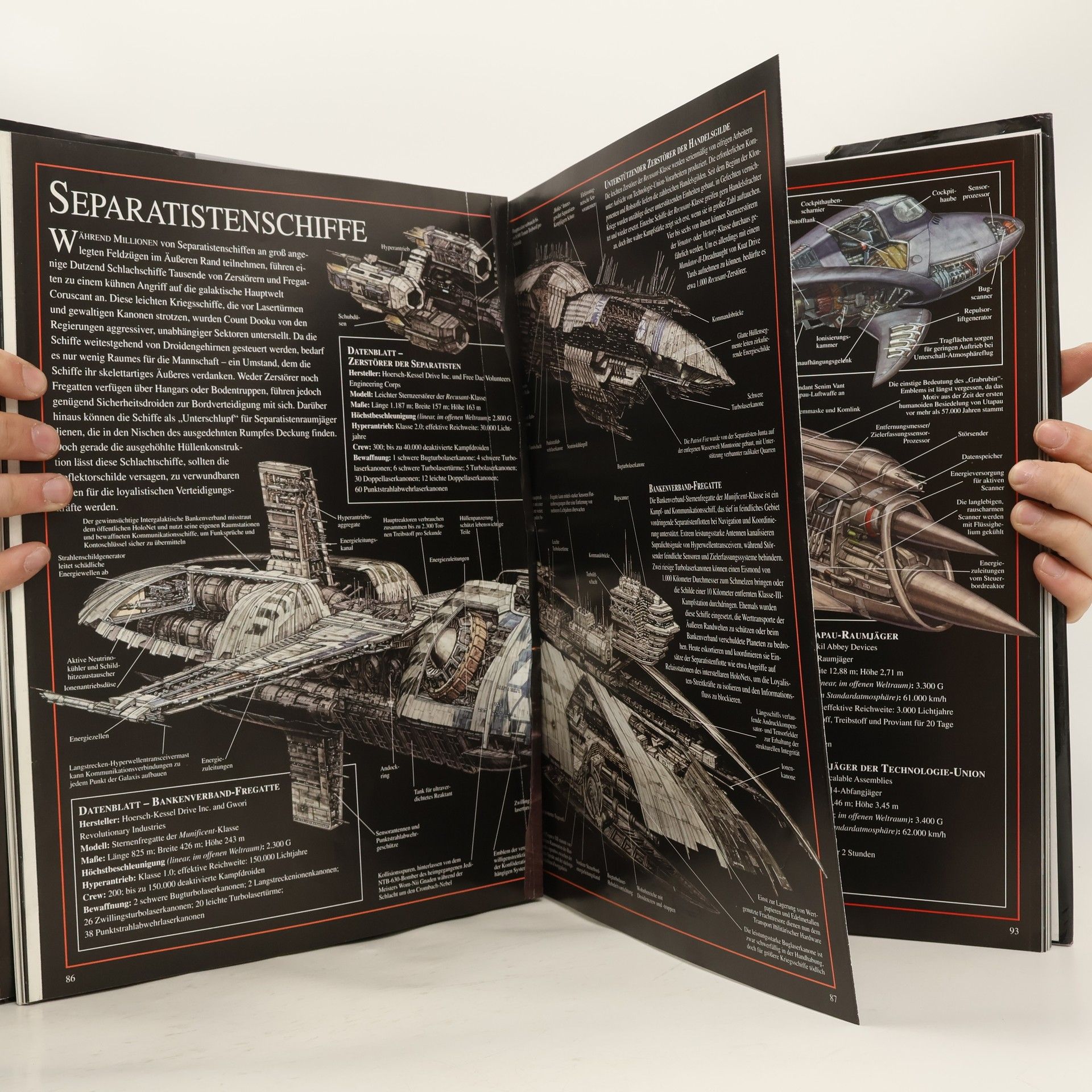 Dieser Band enthält die detailreichen Abbildungen der Fahrzeuge und Raumschiffe der kompletten Star-Wars-Saga. Die Risszeichnungen offenbaren die Funktionsweise aller Fahrzeuge der sechs Star-Wars-Filme, angefangen mit den eleganten Republikkreuzern bis zu den Furcht einflößenden massenproduzierten Kriegsmaschinen des Galaktischen Imperiums. Die farbigen, großformatigen Illustrationen gewähren Einblick in die Geheimnisse der Raumschiff-Technologie: Funktionsweise diverser Antriebe, Repulsorlifte, Deflektorschildgeneratoren und Spionage-Einrichtungen. Jedes noch so kleine Detail wird enthüllt und erläutert. Datenblätter und Anmerkungen ergänzen die Abbildungen.