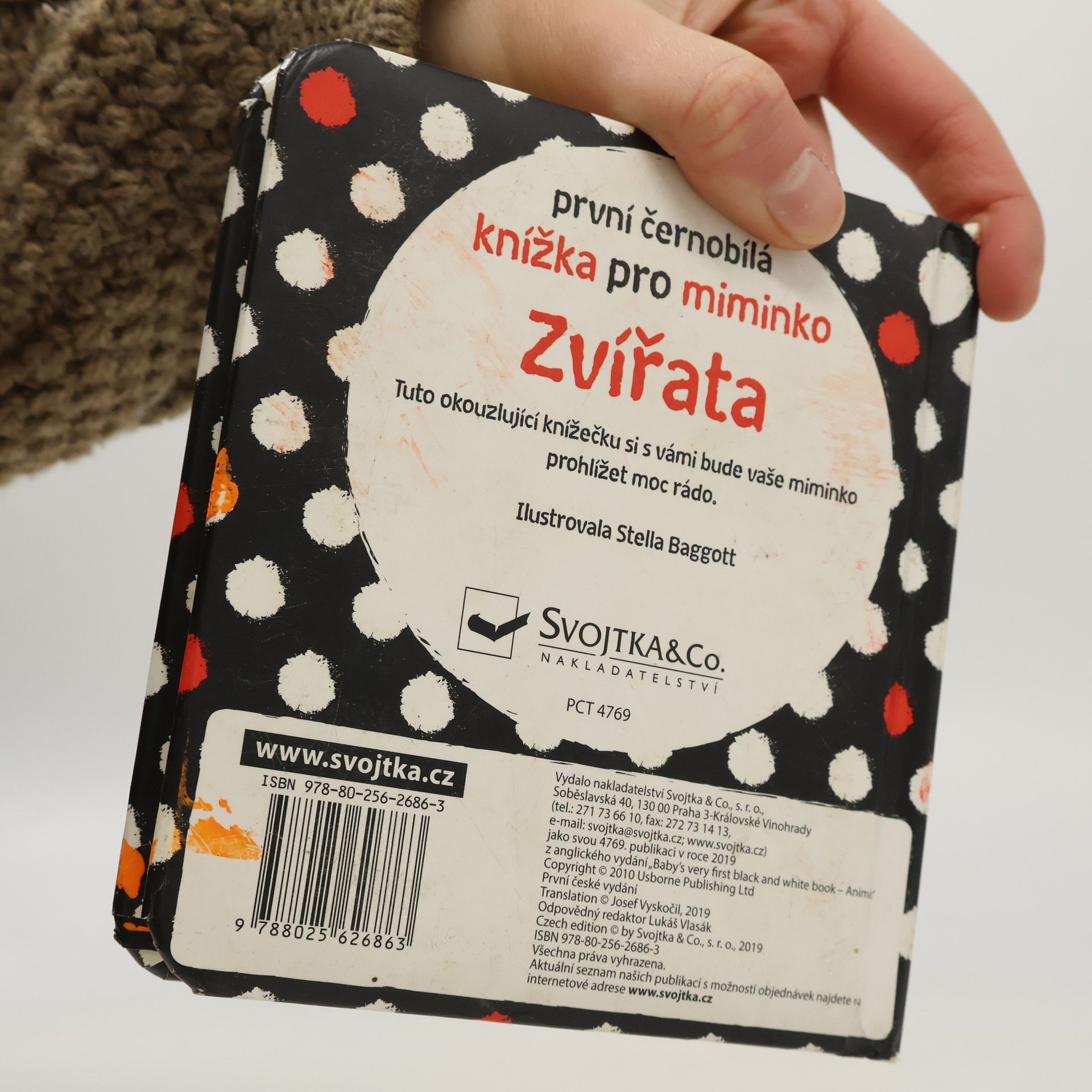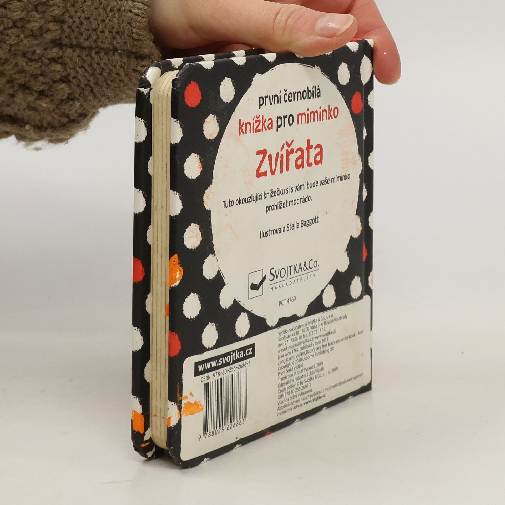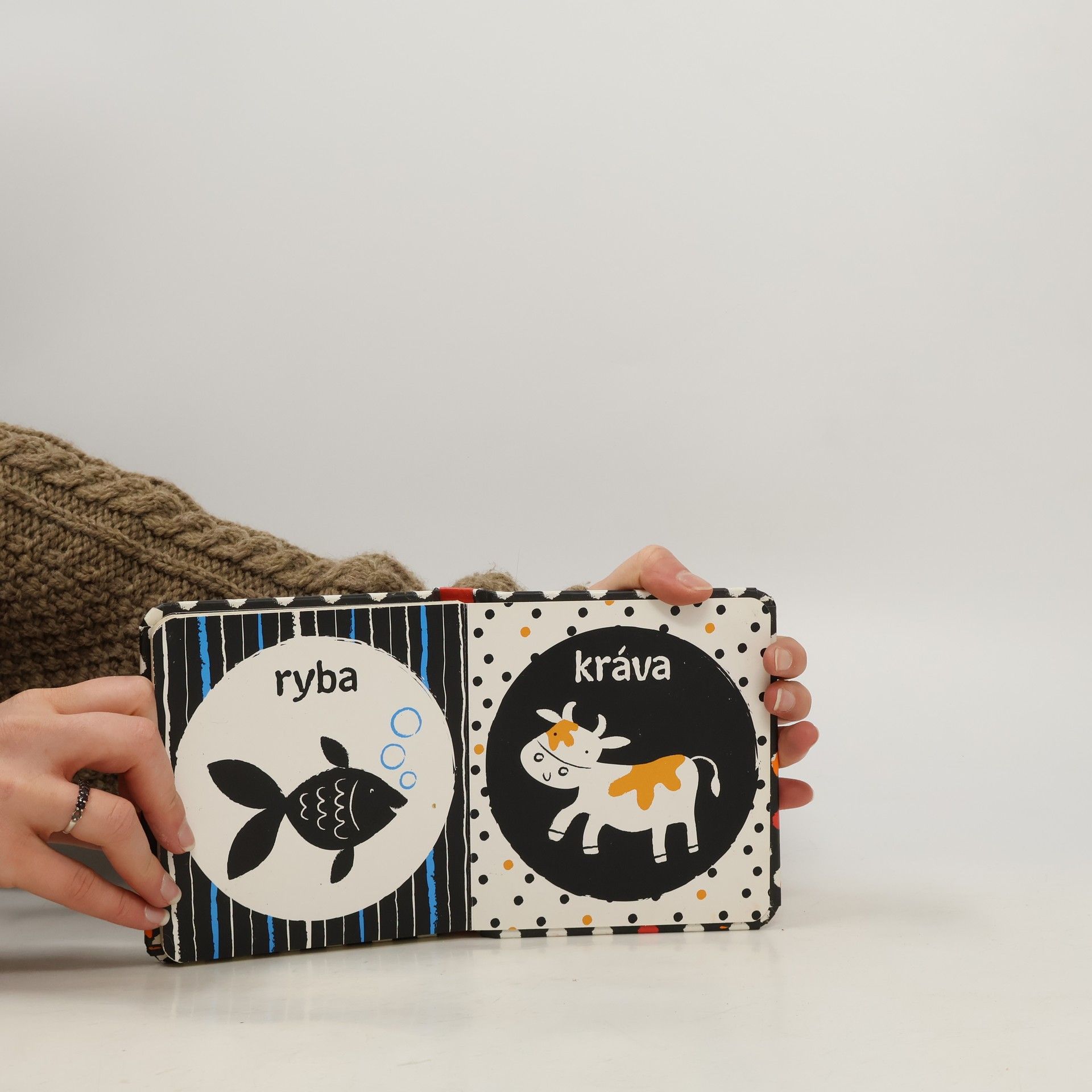 Ideální první knížka pro vaše miminko. Velká je tak akorát do dětských ručiček, má oblé hrany a díky pevným stránkám vydrží i méně šetrné zacházení. Obrázky zvířátek, uzpůsobené malému děťátku, si vaše miminko může prohlížet stále dokola. Černobílá varianta s jemnými barevnými prvky je pro správný vývoj zraku malého miminka vhodnější než pestrobarevné obrázky. Ukažte svému děťátku, jak má otáčet pevné stránky, a rozvíjejte tak u něj jemnou motoriku a koordinaci pohybu prstíků.