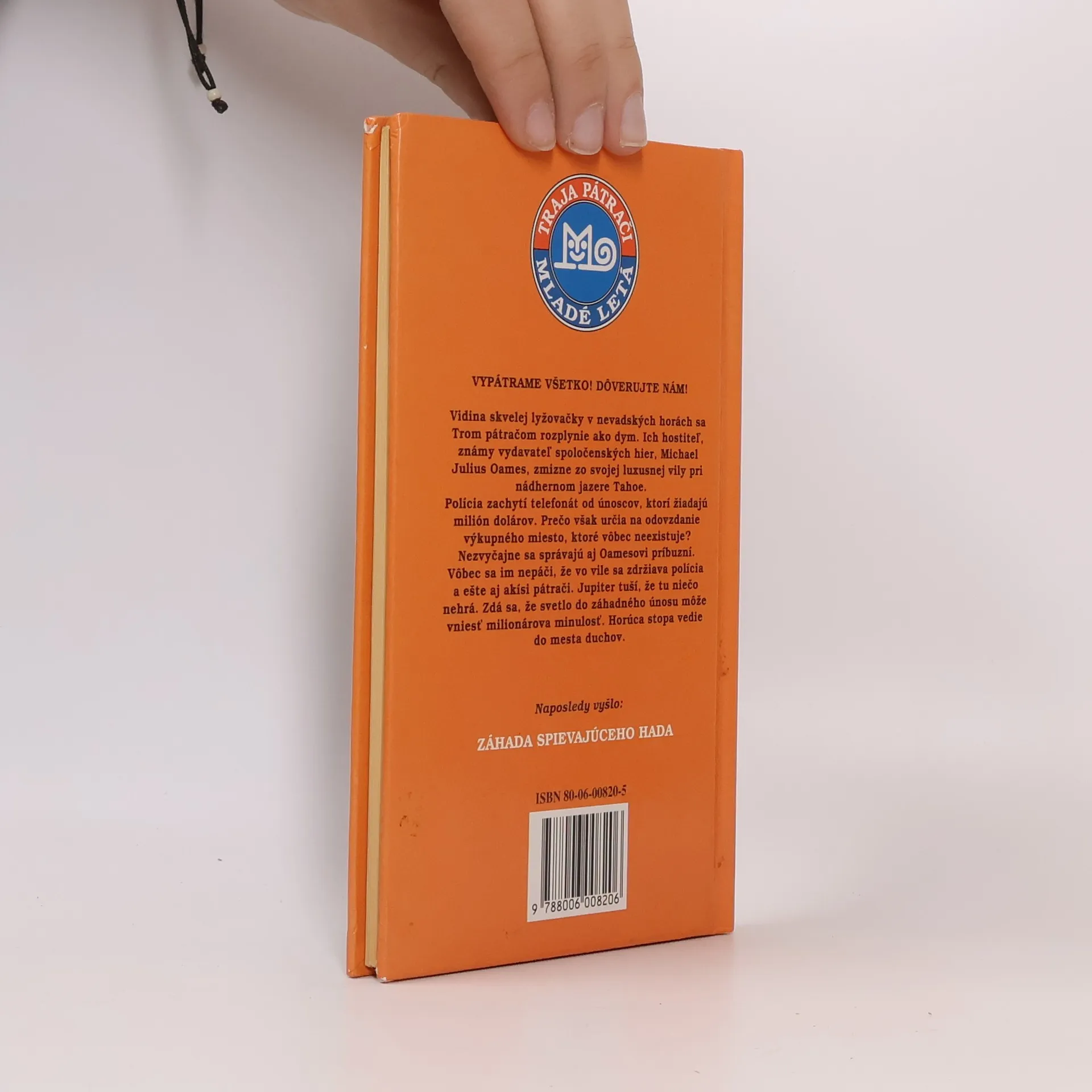 Vidina skvelej lyžovačky v nevadských horách sa Trom pátračom rozplynie ako dym. Ich hostiteľ, známy vydavateľ spoločenských hier, Michael Julius Oames, zmizne zo svojej luxusnej vily pri nádhernom jazere Tahoe. Polícia zachytí telefonát od únoscov, ktorí žiadajú milión dolárov. Prečo však určia na odovzdanie výkupného miesto, ktoré vôbec neexistuje ? Nezvyčajne sa správajú aj Oamesovi príbuzní. Vôbec sa im nepáči, že vo vile sa zdržiava polícia a ešte aj akísi pátrači. Jupiter tuší, že tu niečo nehrá. Zdá sa, že svetlo do záhadného únosu môže vniesť milionárova minulosť. Horúca stopa vedie do mesta duchov